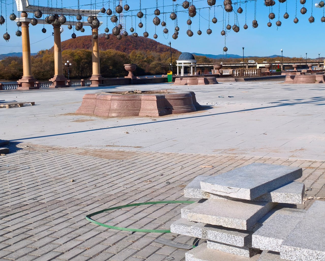 Приводят в порядок и амфитеатр. Специалисты меняют сиденья и обновляют плиточное покрытие. На самой набережной меняют брусчатку.