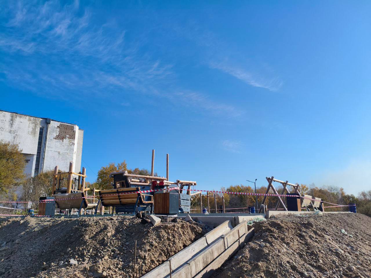 Значимым элементом обновления станет универсальная детская площадка рядом с областной филармонией, которая объединит игровые и спортивные функции. Большая часть работ здесь уже выполнена.