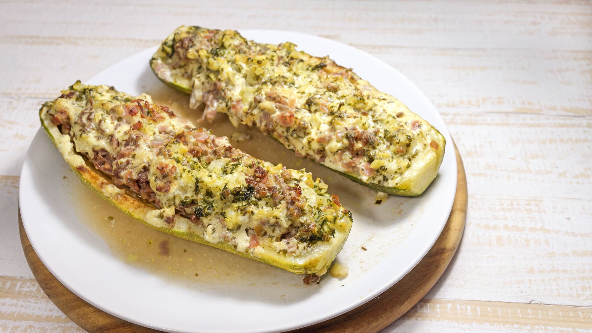 Одно из самых популярных горячих блюд из кабачков — фаршированные лодочки. Как правило, внутрь овощей кладут мясо, а потом запекают. Если такой вариант наскучил, попробуйте сменить начинку.