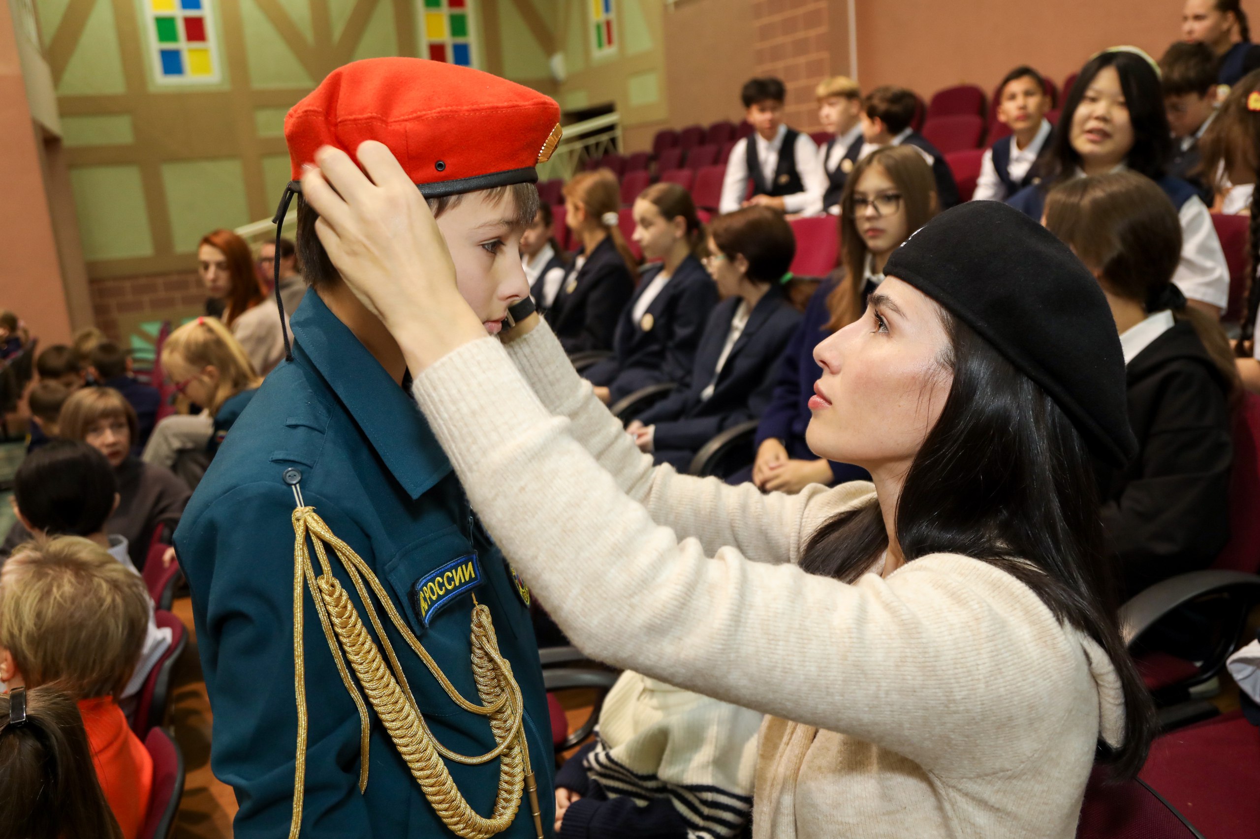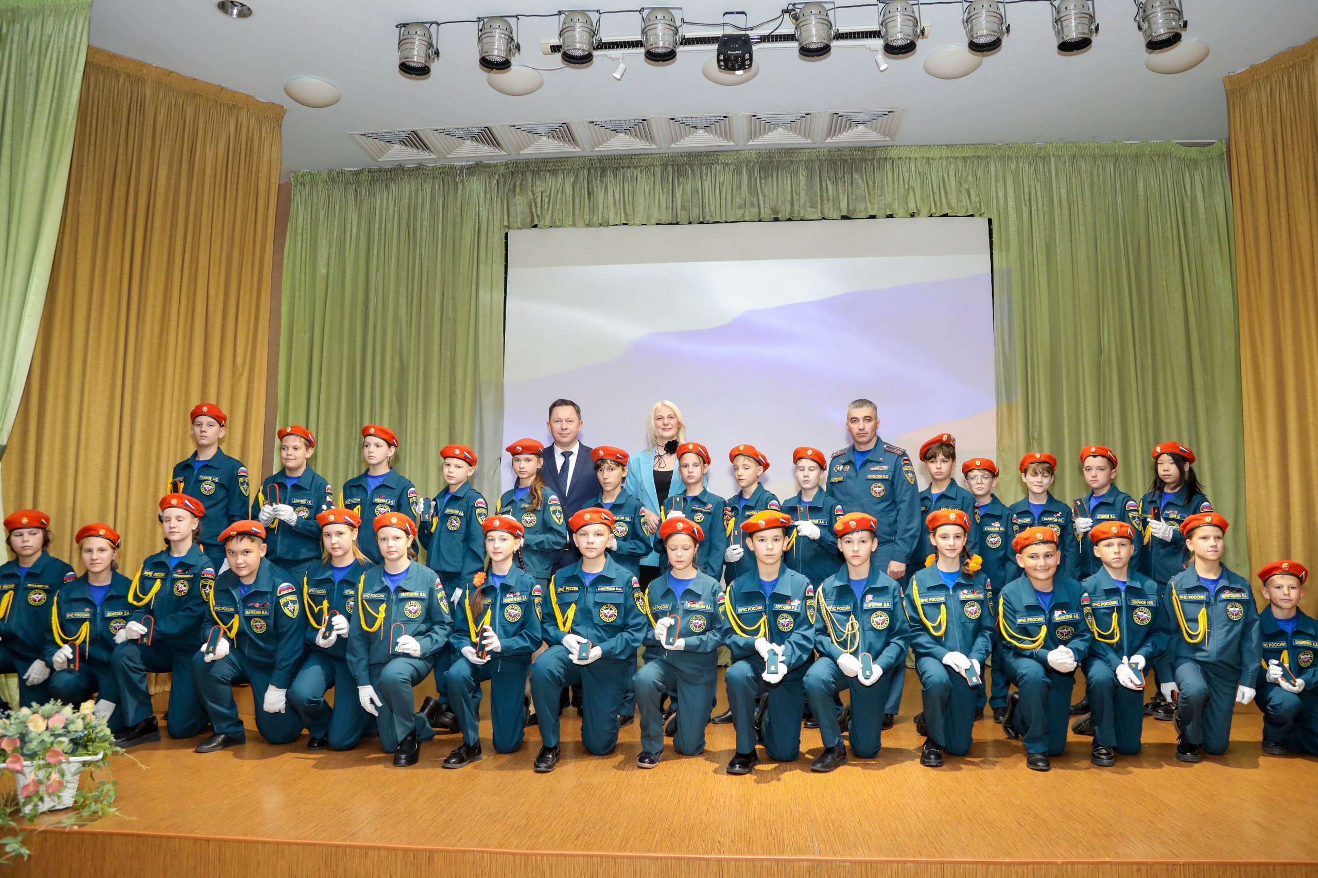 В гимназии №1 Биробиджана прошла церемония посвящения в кадеты МЧС России. Те самые 34 первоклассника, с которых в 2019 году начался первый в ЕАО кадетский класс пожарно-спасательного профиля, официально получили свои погоны.
