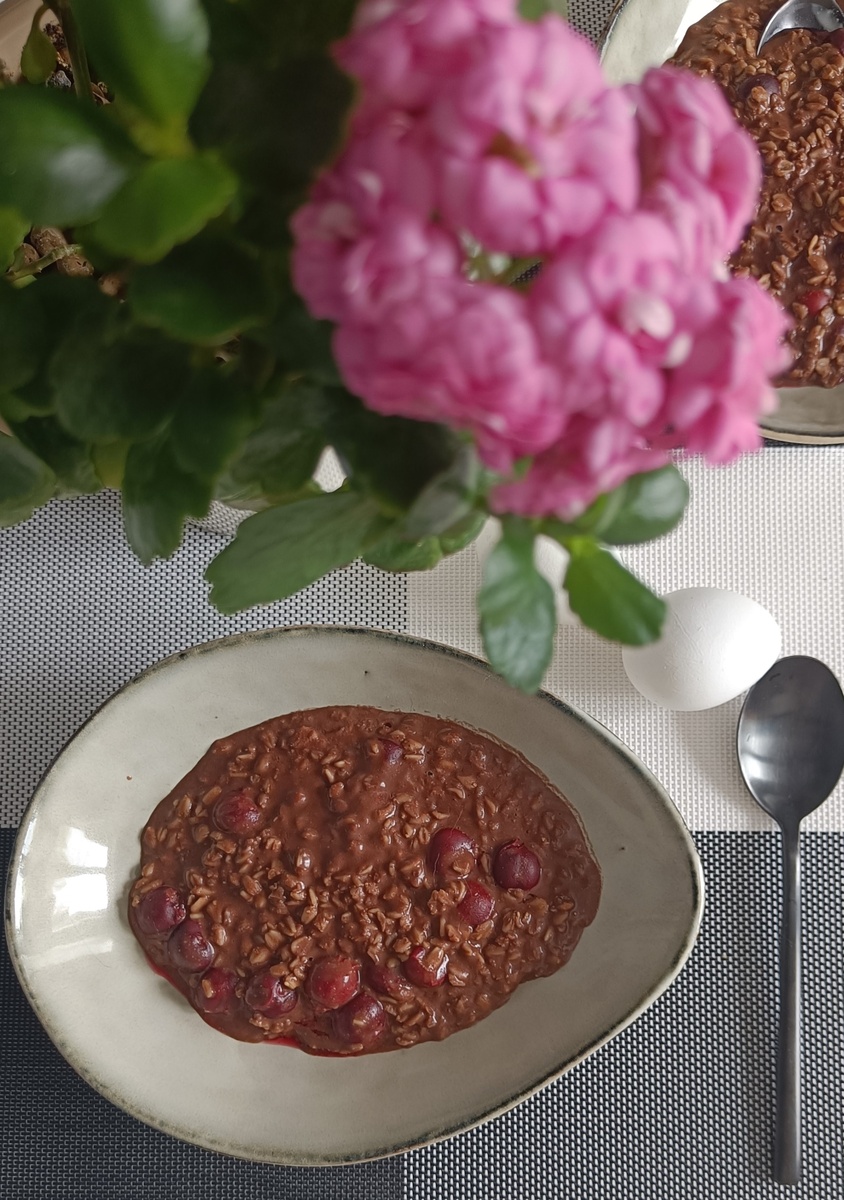 - Шоколадная овсянка с вишней и корицей: Эта каша представляет собой идеальное сочетание любимых вкусов. Шоколад и вишня прекрасно уживаются, создавая неповторимый аромат и комфорт. Особенно приятно наслаждаться ею, когда за окном дождливая погода.