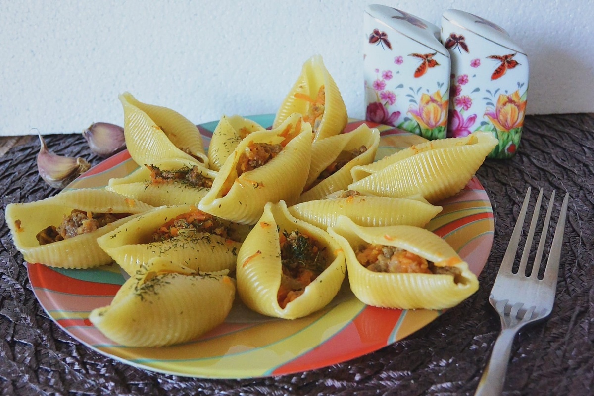 Получившуюся начинку аккуратно наполните ракушки и уложите их в сковороду. Накройте фольгой и отправьте в духовку, разогретую до 180 градусов, на 20-25 минут. Как только ракушки будут готовы, посыпьте их свежей зеленью для яркости и свежести.