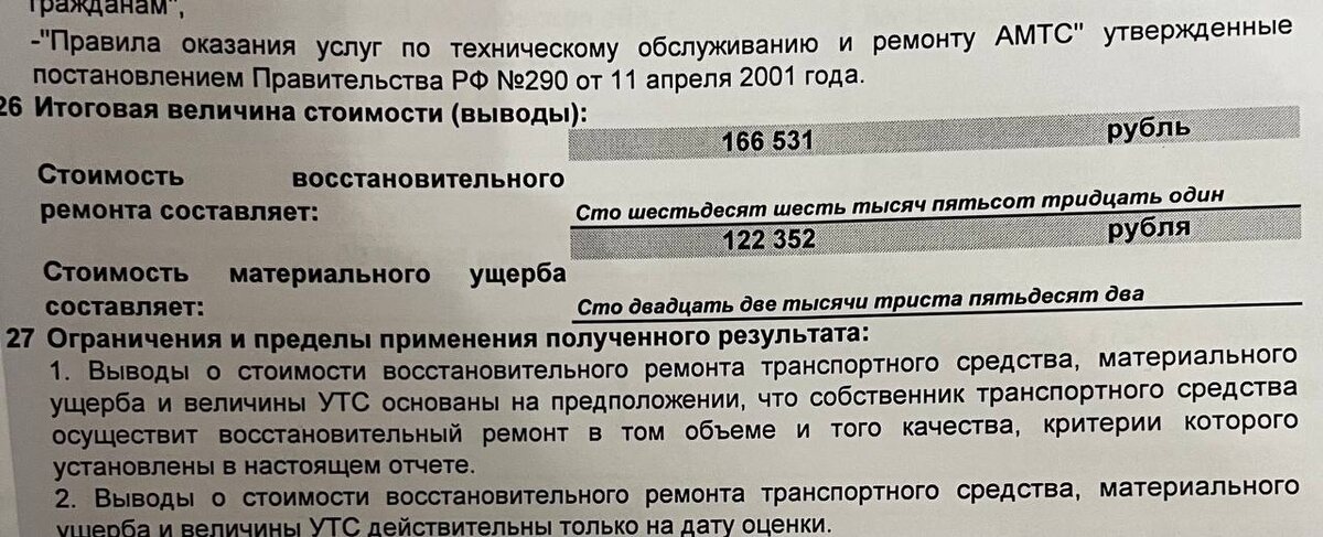 Следует помнить, что страховая выплата будет рассчитана по Единой методике, что может значительно снизить сумму, которую вы получите. Например, нередко происходит так, что сумма, выплаченная страховкой, оказывается намного ниже стоимости восстановительного ремонта. В одном из недавних случаев выплатили всего 66 000 рублей, тогда как ремонт автомобиля оценили в 166 531 рубль.