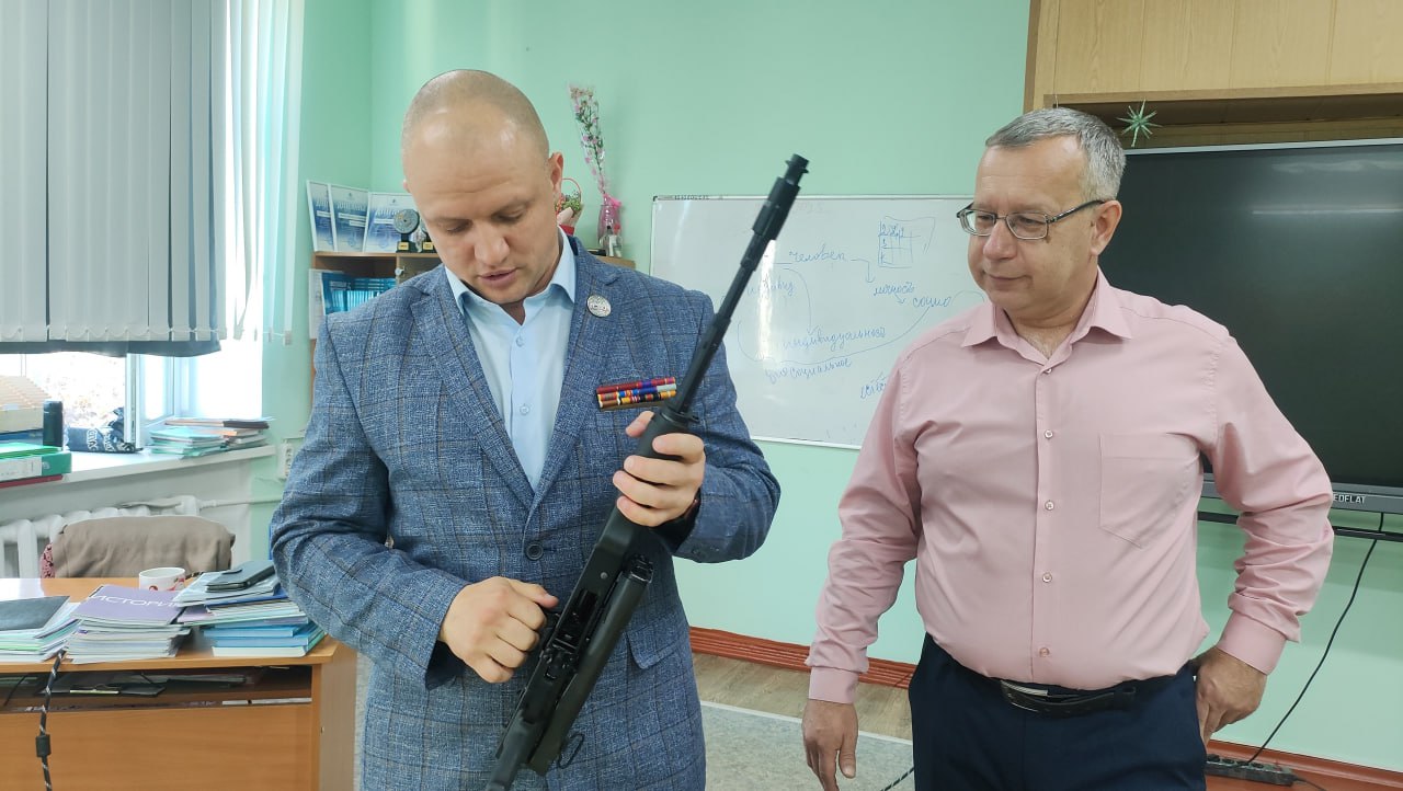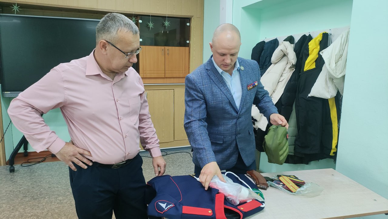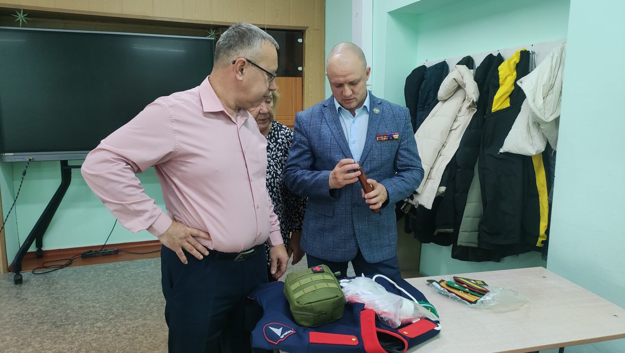 Во встрече принял участие директор школы Роман Карепов, который продемонстрировал специализированное снаряжение и экипировку, переданные учебному заведению губернатором Еврейской автономной области Марией Костюк для практической подготовки юнармейцев.