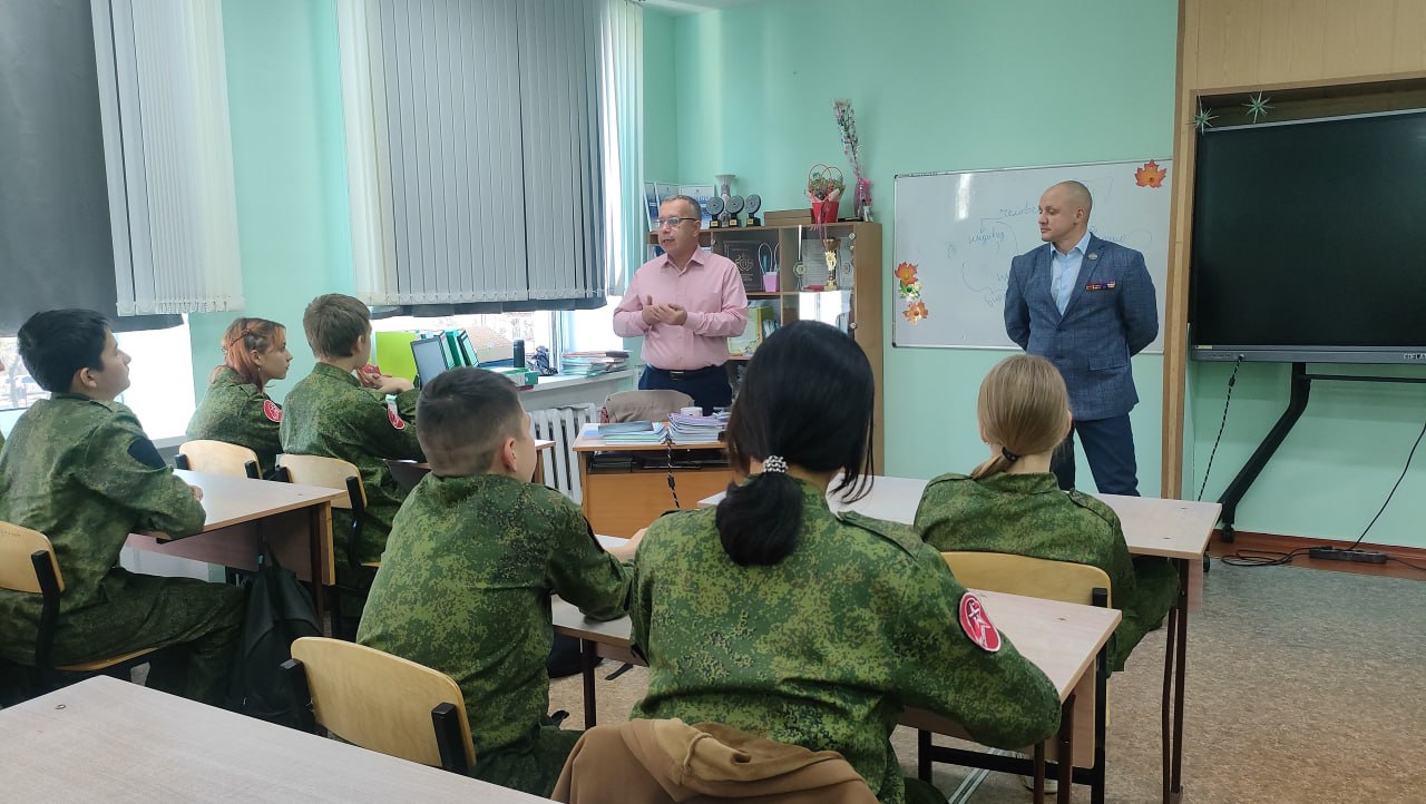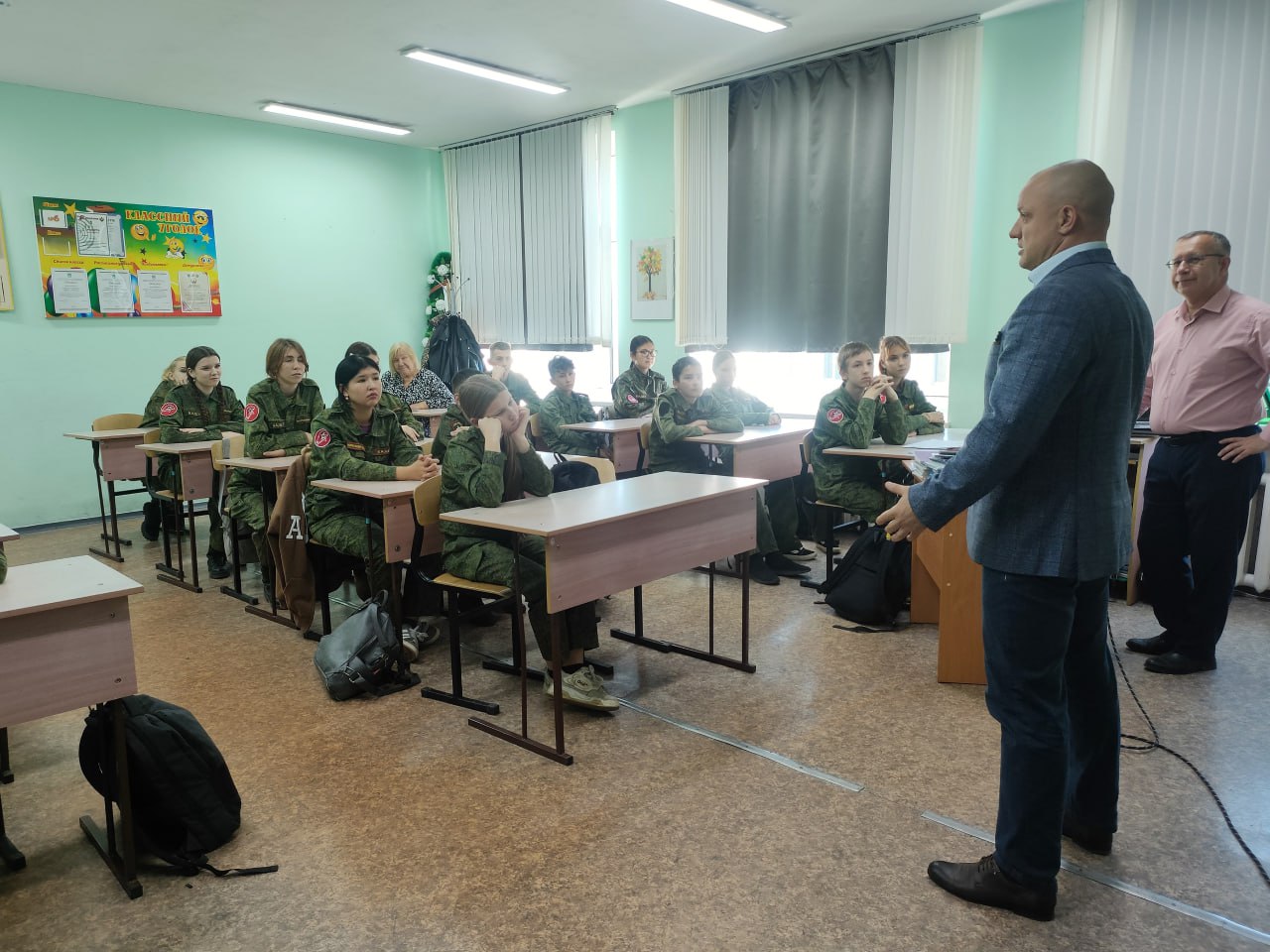 Председатель городской Думы Сергей Радецкий встретился с воспитанниками кадетского 8 «Б» класса школы №6. Сергей Анатольевич поделился с кадетами своим опытом службы в спецназе, рассказал о работе в городской Думе и деятельности Ассоциации ветеранов СВО, помогающей бойцам и их семьям. Особое внимание он уделил теме передачи опыта от старшего поколения молодежи.