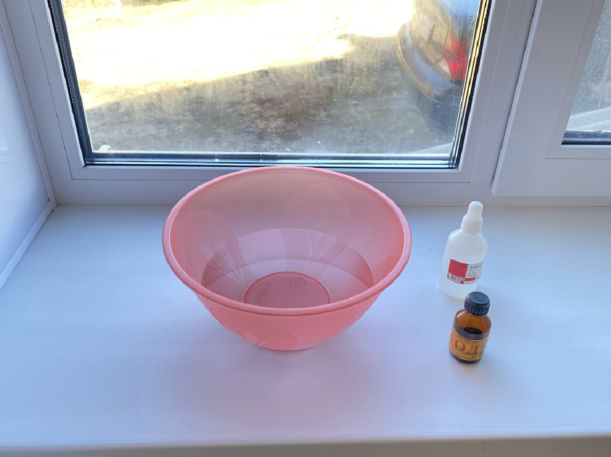 Для начала потребуется один литр тёплой воды. В него добавляется полчайной ложки йода и столовая ложка нашатырного спирта. Эти компоненты работают в идеальной связке: йод убирает грязь и придаёт блеск, а нашатырный спирт помогает дополнительно устранить загрязнения. Хорошо перемешав раствор, можно переходить к следующему шагу.