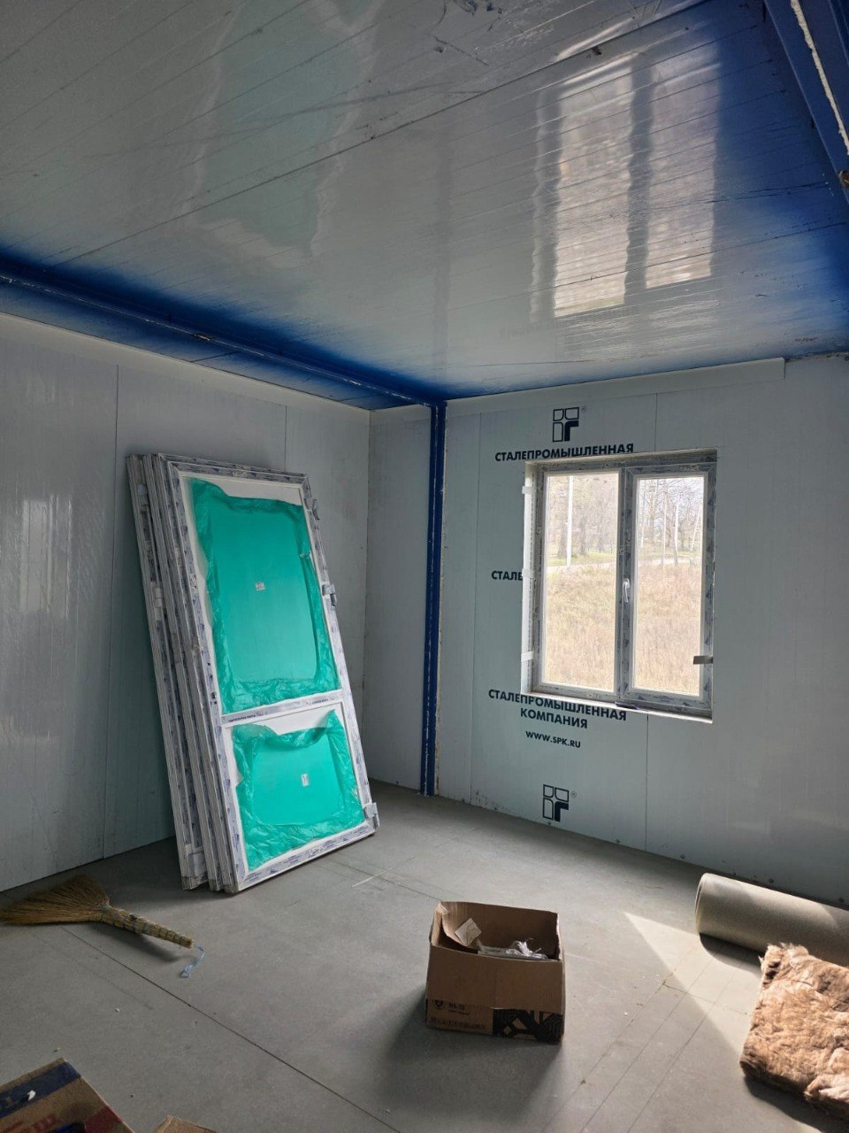 Земельный участок под ФАП уже подготовлен. Установлен металлический каркас здания, возведены стены из современных сэндвич-панелей, смонтированы кровля, окна и двери.