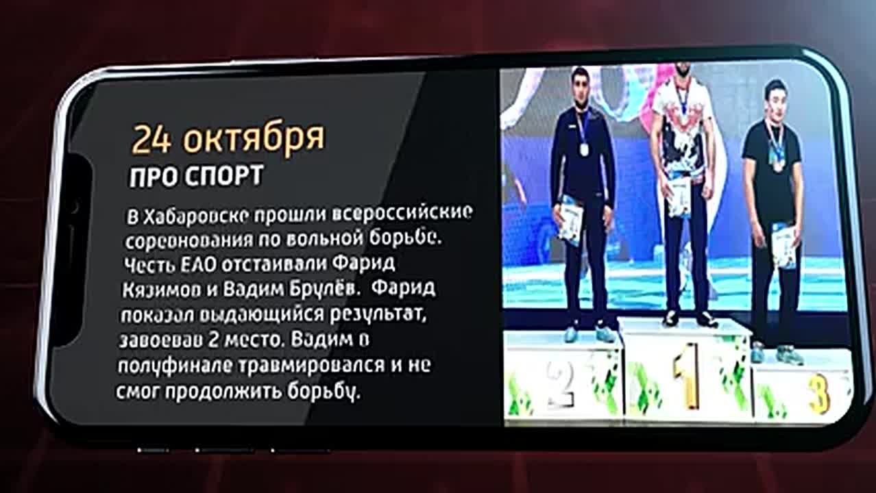 В Хабаровске прошли всероссийские соревнования по вольной борьбе. Честь ЕАО отстаивали Фарид Кязимов и Вадим Брулёв. Фарид показал выдающийся результат, завоевав 2 место. Вадим в полуфинале травмировался и не смог продолжить борьбу.