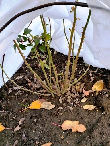 - Каркас и укрытие: Для пригнутых роз сооружают каркас высотой 40-50 см, после чего на него укладывают укрывной материал, фиксируя его, чтобы не унесло ветром.