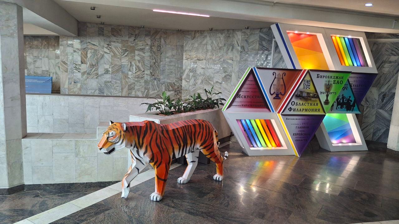 К слову, таких тигра в Биробиджане три. Они установлены в филармонии, на «Швейке» и ГЛК «Фома». У всех индивидуальный раскрас.
