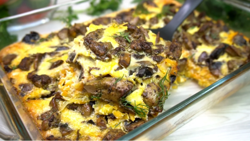 Этот оригинальный рецепт открывает широкие горизонты для кулинарного эксперимента — вместо грибов можно использовать цветную капусту или молодые кабачки, и каждый раз результат будет восхитительным.