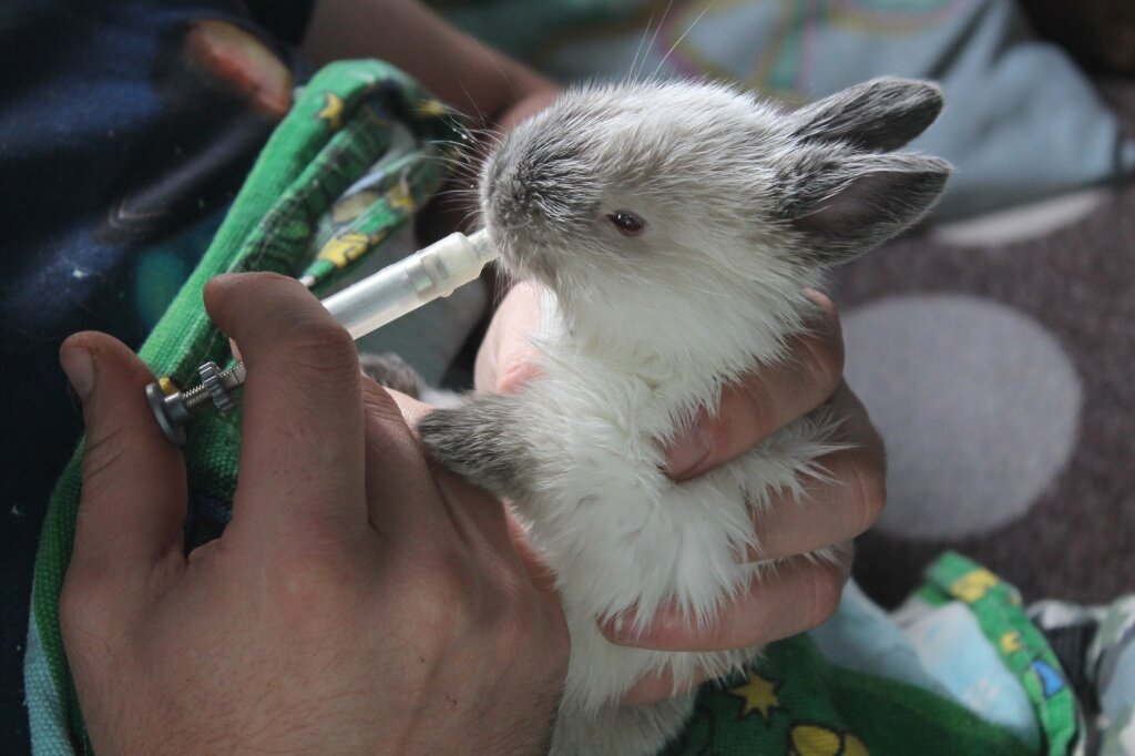 Изучая информацию, владельцы узнали, что молоко крольчихи значительно жирнее и концентрированнее, чем коровье. Проблема заключалась в том, что обычное молоко не обеспечивало нужные питательные вещества. Они пришли к выводу, что лучшим вариантом станет коровье молоко, смешанное со сгущенкой, чтобы увеличить концентрацию сухих веществ. С самого начала кормления было решено делать это три-четыре раза в день. В первые дни процесс оказался трудоемким, но постепенно крольчата адаптировались.