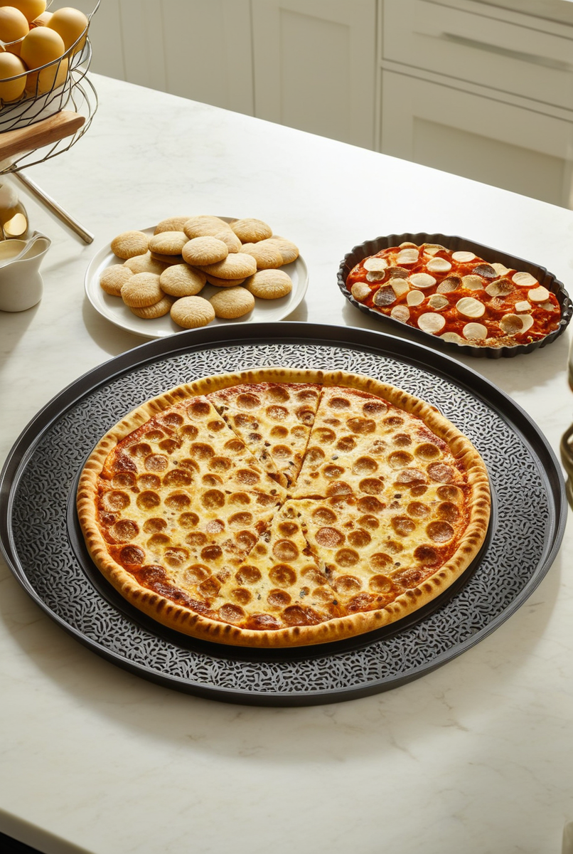 - Перфорированный противень: Благодаря отверстием на дне, идеально подходит для пиццы и хлеба, обеспечивая хрустящую корочку.