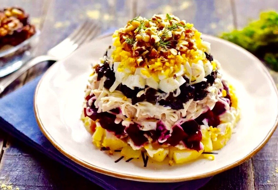 Каждый из этих салатов представляет собой не просто сочетание ингредиентов, но и игру вкусов. Используйте различные варианты заправок: от классического майонеза до пряной пивной. Попробуйте добавить изюм, замоченный в портвейне, чтобы раскрыть новые грани вкуса в старинных рецептах.