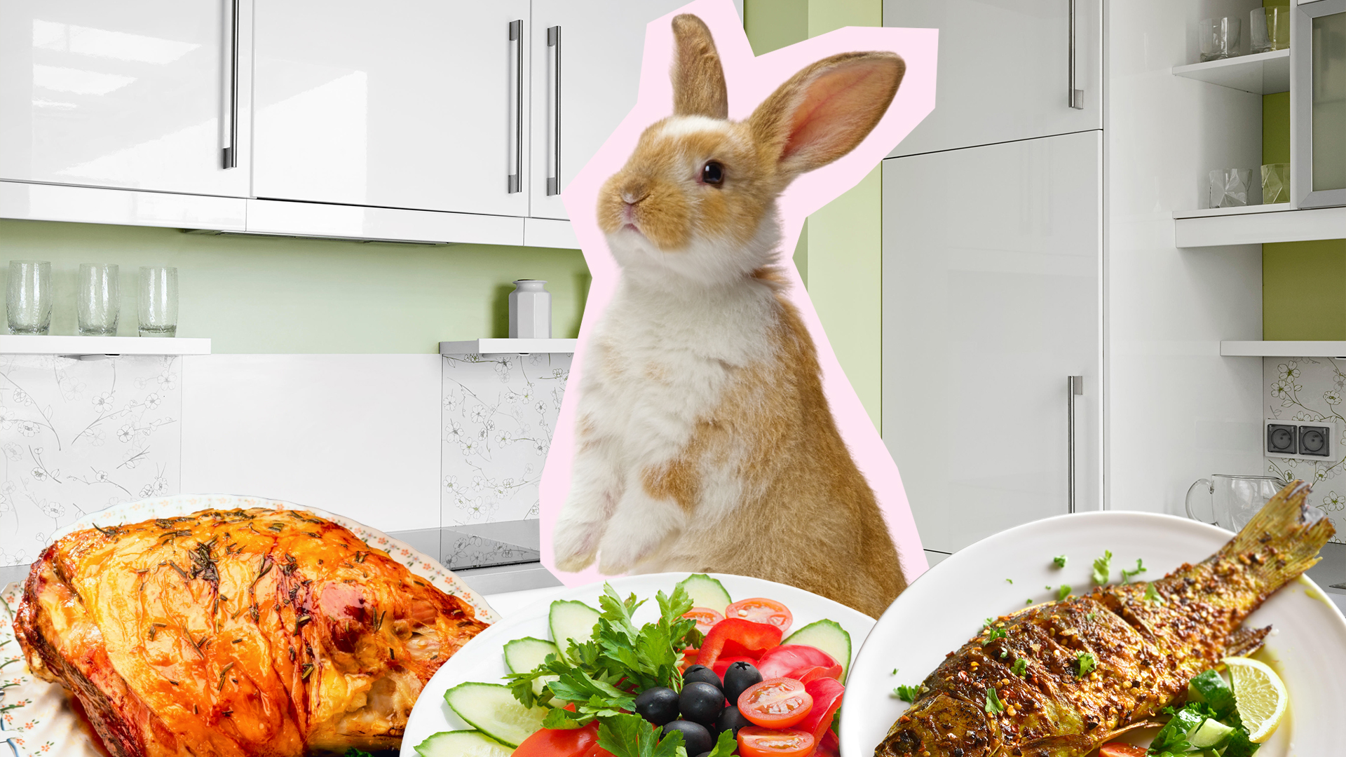 Поскольку кролик травоядное животное, ни в коем случае нельзя подавать мясо этого животного. А вот нейтральным продуктом считается баранина. Ее можно смело выставлять на стол.