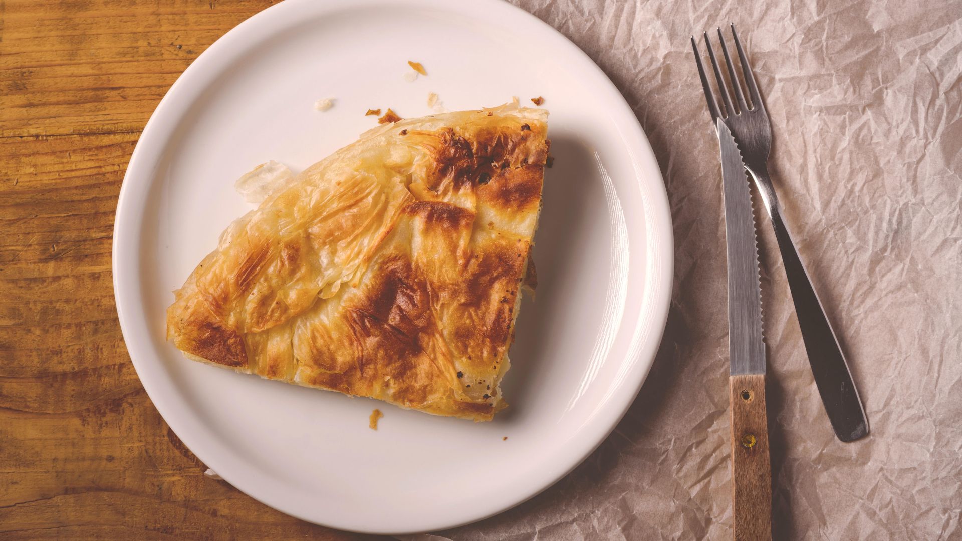 Сыр натираем и смешиваем с фетой. Затем раскатываем тесто в большую лепешку, засыпаем большей частью начинки и защипываем. После снова раскатываем лепешку, кладем ее в форму, смазываем желтком и высыпаем остатки начинки.
