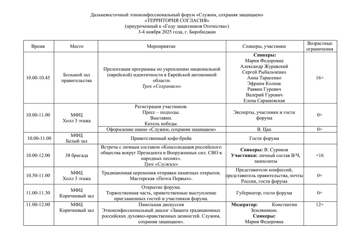 3 и 4 ноября в ЕАО пройдет Дальневосточный этноконфессиональный форум «Служим, сохраняя защищаем» – «Территория согласия». Жители и гости Еврейской автономной области смогут посетить более 20 его площадок.