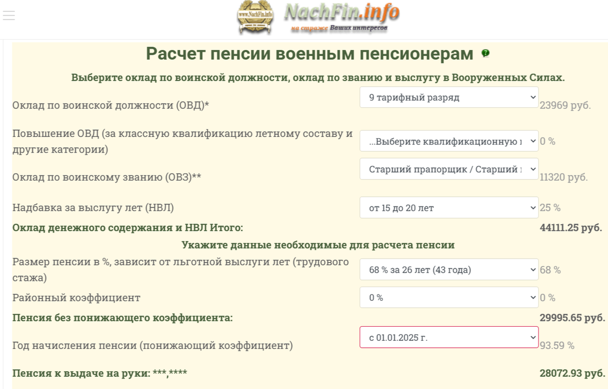 Например, если на 1 марта 2024 года ваша пенсия составляет 25 000 рублей и к ней добавится 3,2 года льготной выслуги, расчет будет выглядеть следующим образом: