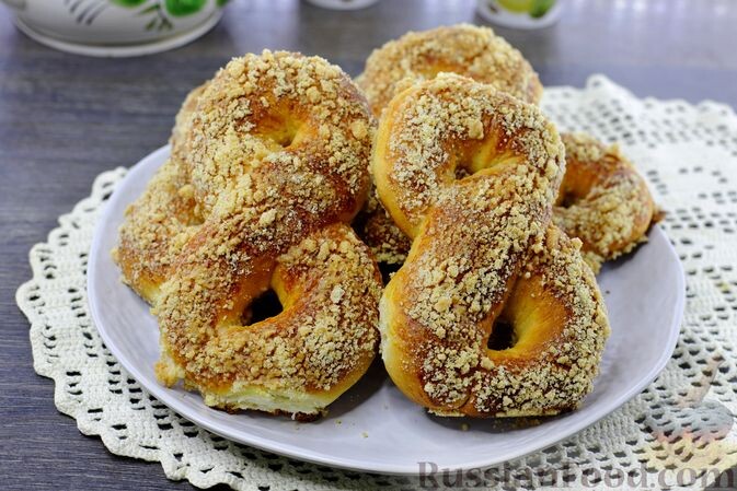 - Булочки "Восьмёрки". Эта изысканная домашняя выпечка привлекает внимание не только вкусом, но и своим внешним видом. Дрожжевое тесто формируется в виде восьмёрок и щедро посыпается песочной крошкой, придающей булочкам хрустящую корочку и воздушную структуру.