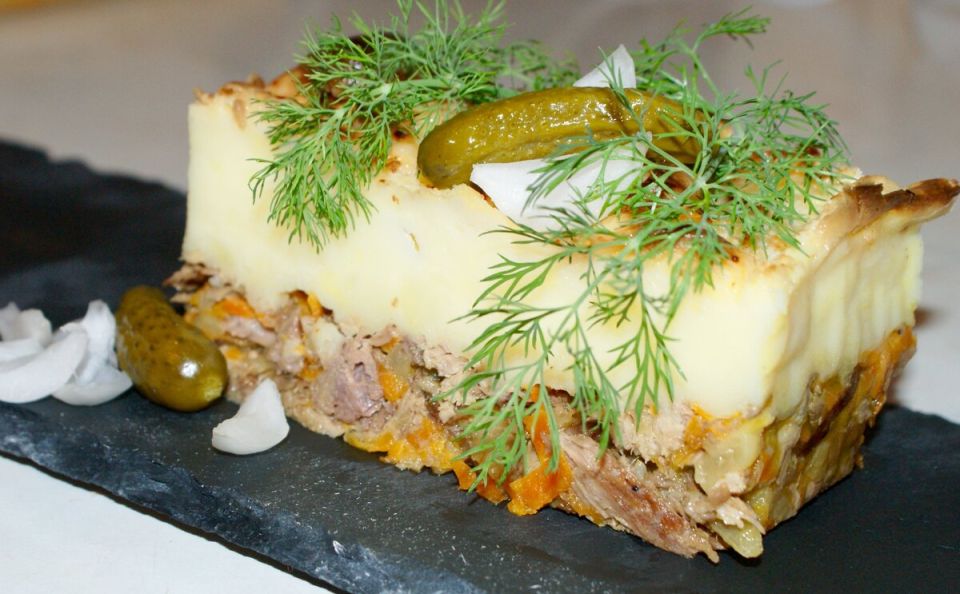 Далее можно приступить к приготовлению картофельного пюре, которое станет одним из ключевых слоев. В подготовленную жаропрочную форму, предварительно смазанную маслом, выкладываем сначала мясную начинку с овощами, а затем равномерно распределяем картофельное пюре сверху. Для любителей добавленного вкуса, подойдут натертый сыр или другие приправы. После этого блюдо отправляется в духовку до образования аппетитной корочки.