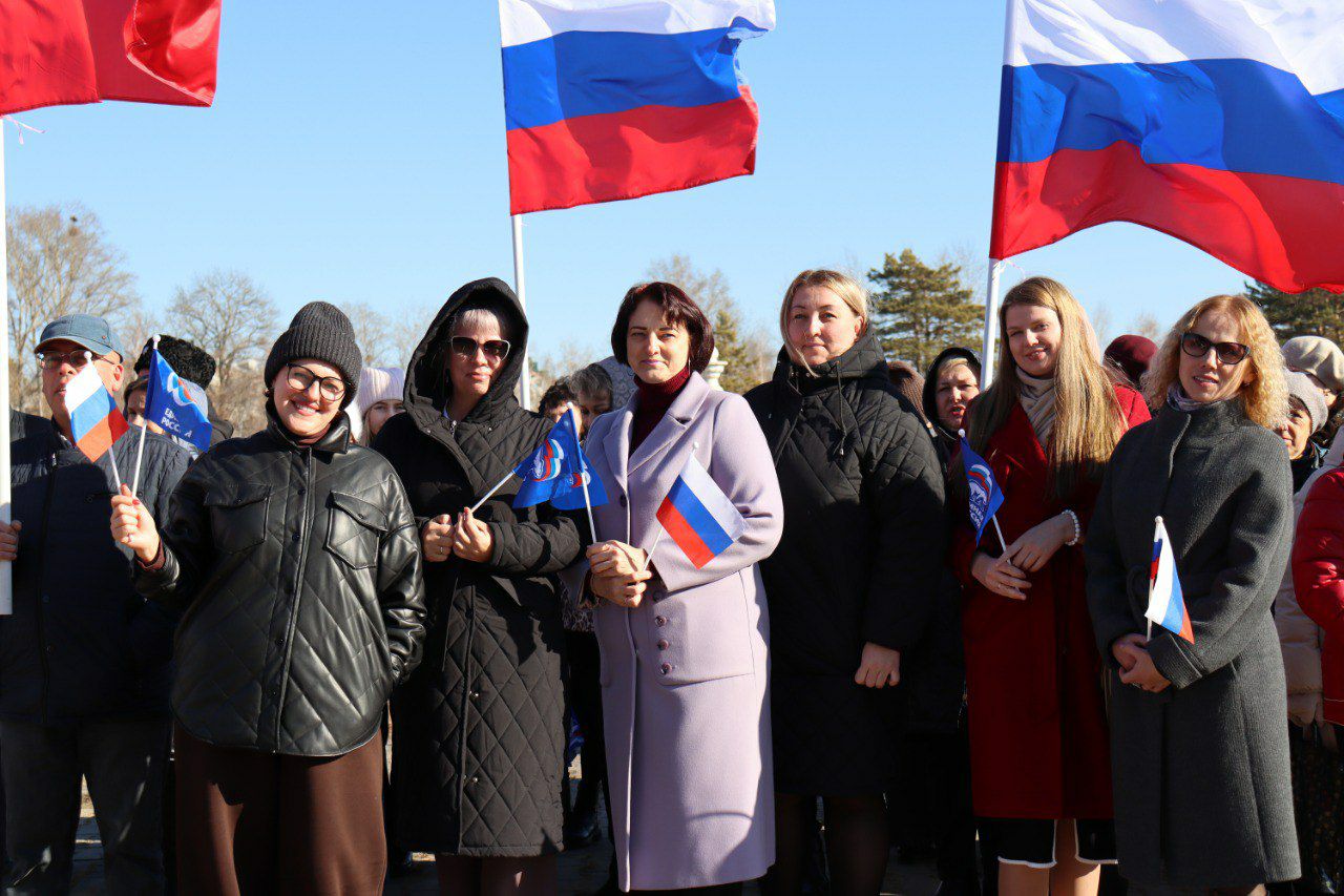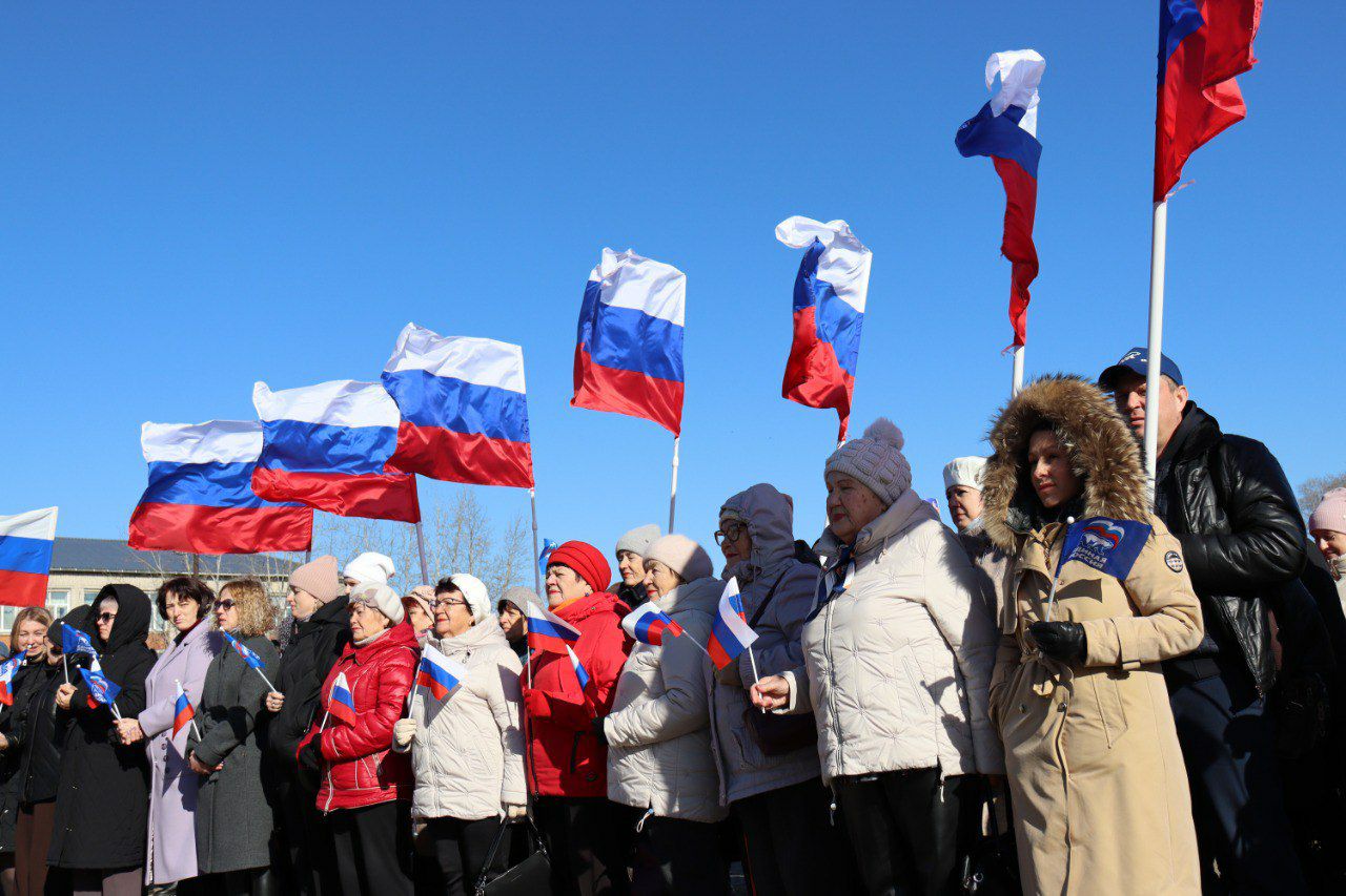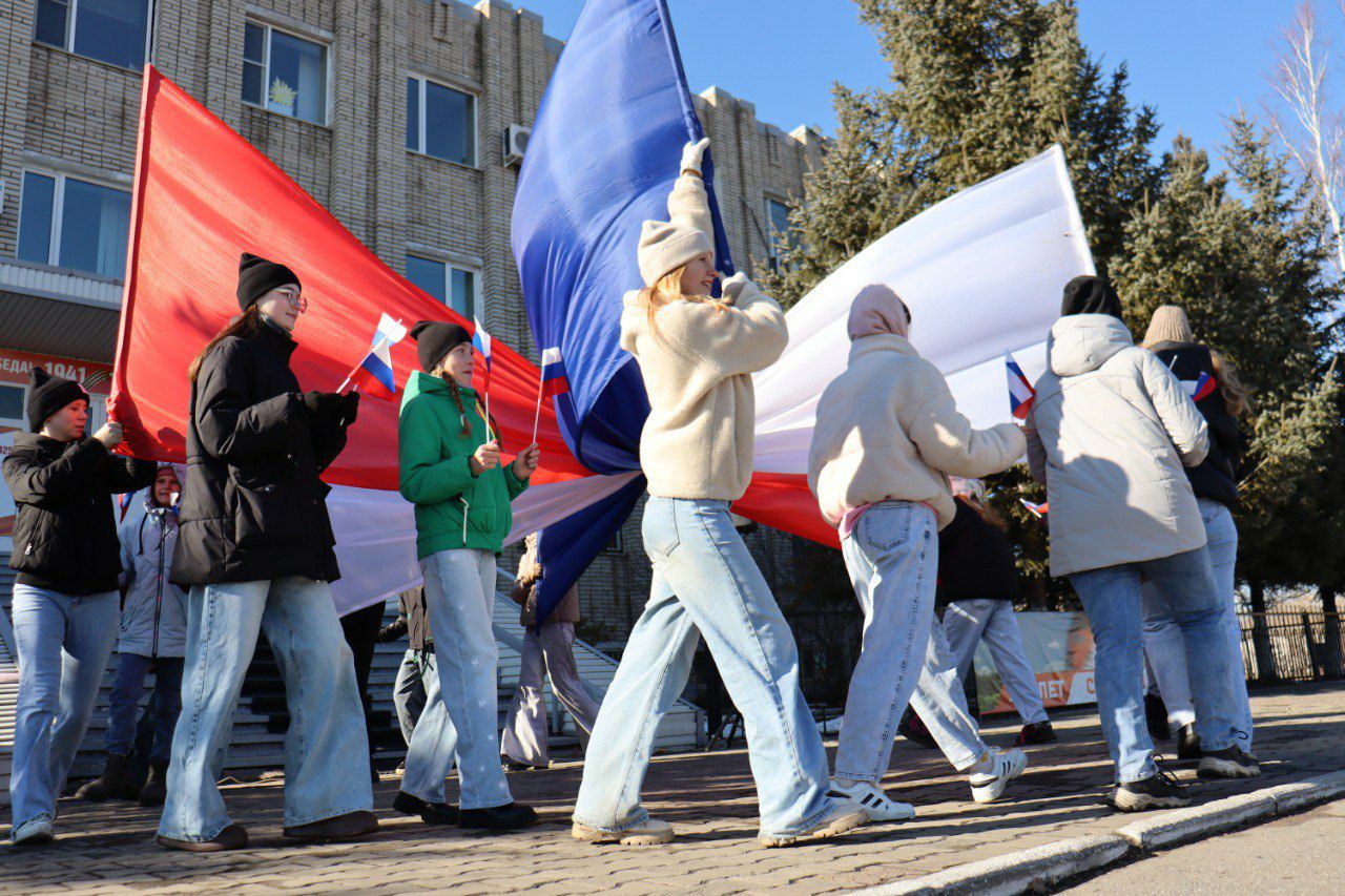 Ещё одним ярким моментом стал марш российского триколора длиной 15 метров по центральной площади посёлка. Участники, символично проходя по площади подарили присутствующим ощущение огромной силы единого государства
