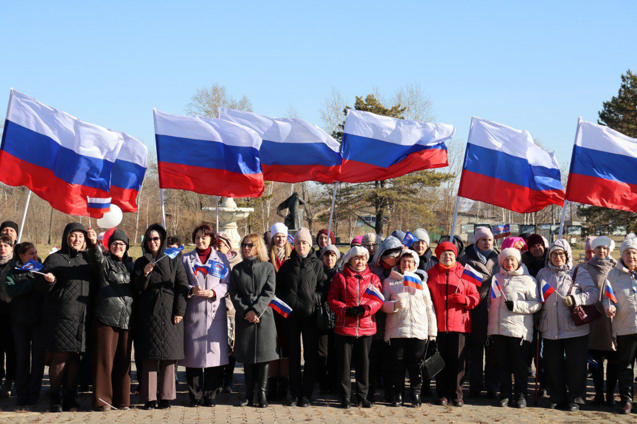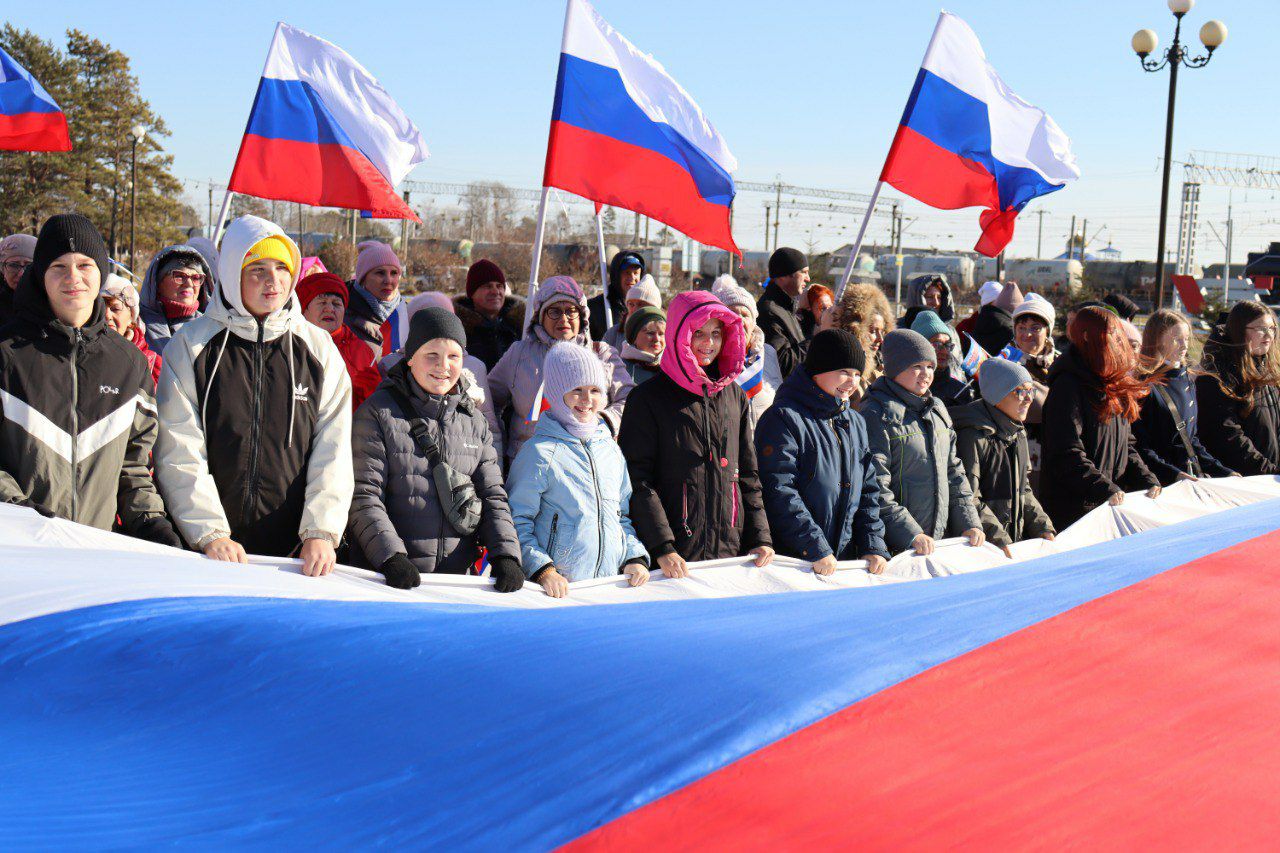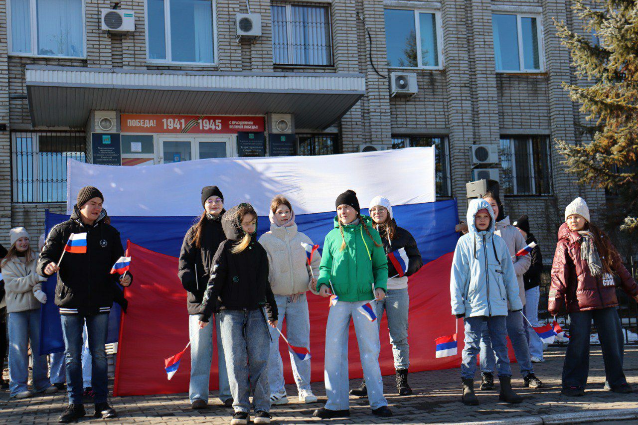 На центральной площади посёлка Смидович состоялась патриотическая акция «Нам силу даёт наша верность отчизне», приуроченная ко Дню народного единства