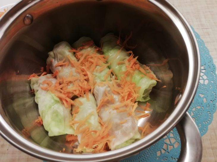 В верхнее отделение пароварки кладут капусту, накрывают крышкой и варят до готовности.