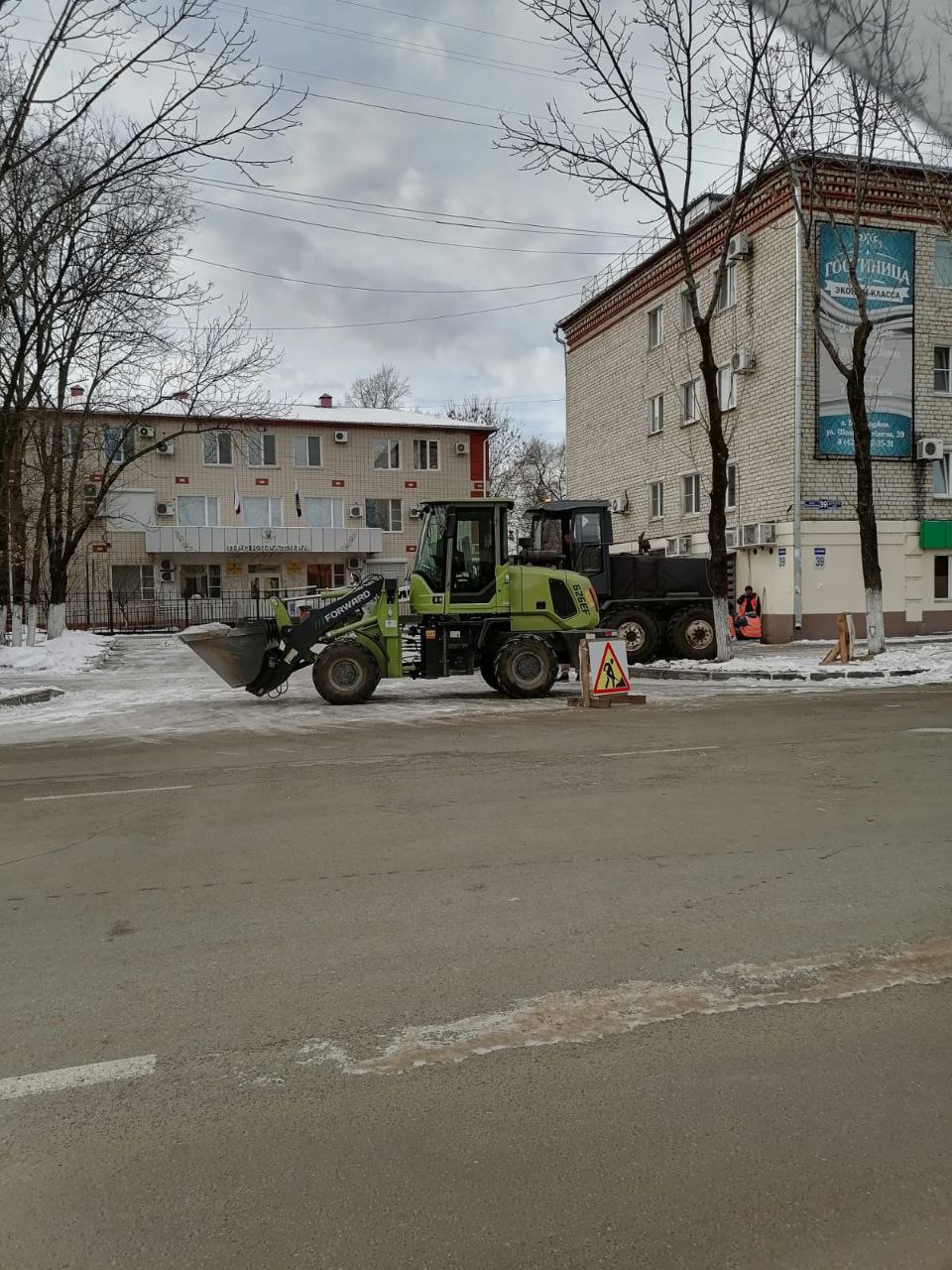 На Школьной улице ведутся работы по очистке придворовой территории и тротуаров. На Набережной и в районе ДСМ коммунальные службы расчищают пешеходные переходы.