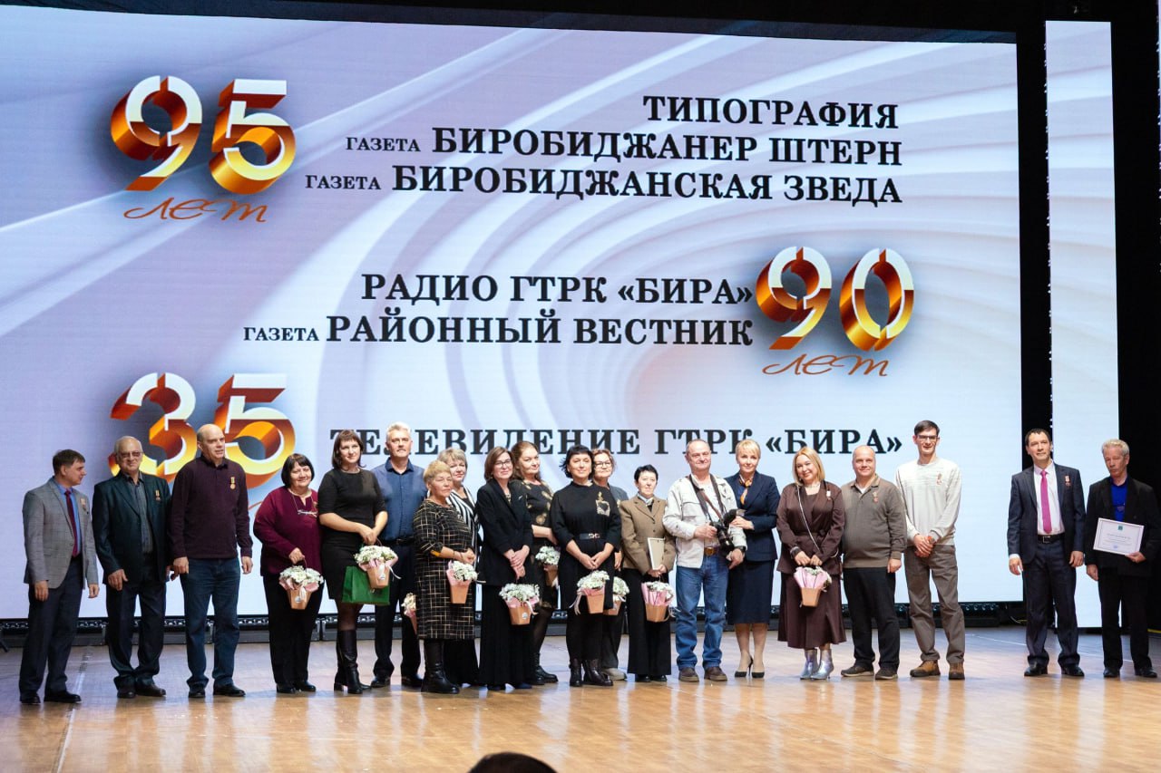 На юбилейную летучку в филармонии собрались коллективы областных газет «Биробиджанер штерн» и «Биробиджанская звезда», чьи редакции отметили 95 лет, работники типографии, образованной с ними в один год, сотрудники Смидовичского «Районного вестника», первый номер которого увидел свет 90 лет назад, а также работники радио и телевидения ГТРК «Бира». В этом году исполнилось 90 лет со дня начала в ЕАО регулярного радиовещания, и 35 лет назад в эфир вышла первая телепередача.