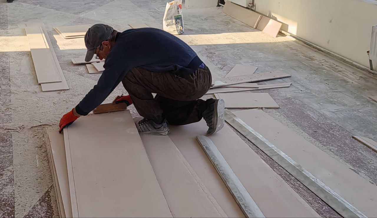 Провели ремонт спортивного зала. Далее подрядчик начнет его покраску.