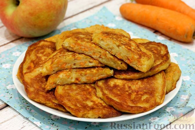 - Морковно-яблочные оладьи: Нежные оладьи с ярким вкусом, дополненные букетом пряностей, порадуют всех любителей сладких завтраков.