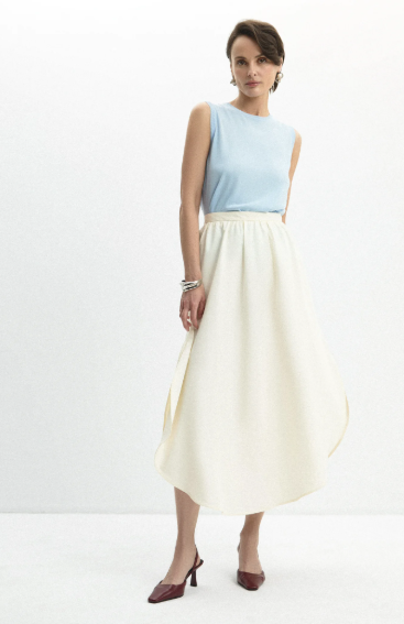 5. Бежевый и белый. Идеальное сочетание для летнего времени, так как в холодные сезоны такие цвета смотрятся менее практично. Бежевые юбки макси и белые топы — отличный выбор для лёгкой прогулки или встречи с подругами.
