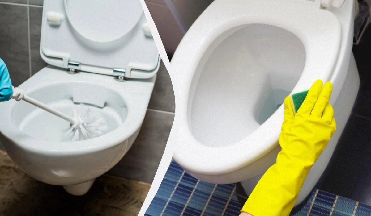 Процесс очистки унитаза