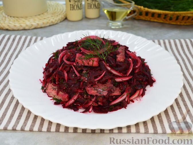 - Салат из свёклы с рыбными консервами: Этот оригинальный салат сочетает в себе отварную свёклу, консервы, репчатый лук и укроп, создавая гармонию вкусов.
