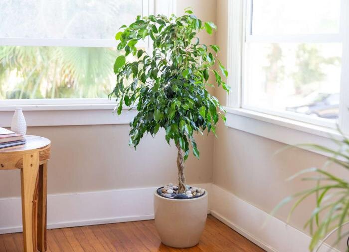 - Фикус: Резиновое дерево с крупными блестящими листьями, которое создано для того, чтобы украшать ваш интерьер. Легко адаптируется к условиям освещения.