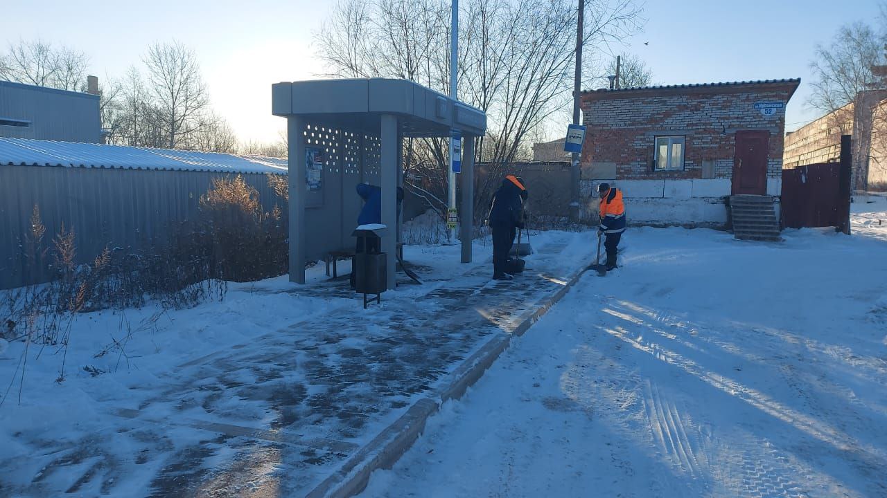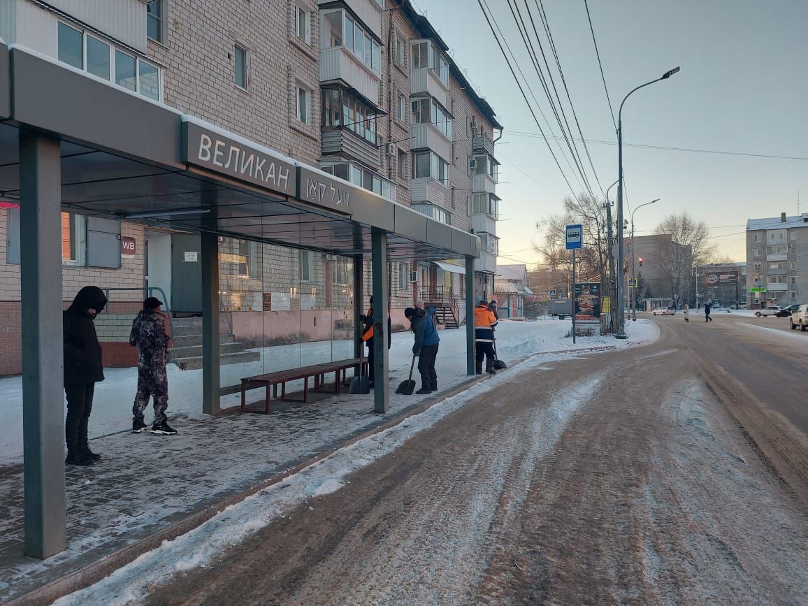 Параллельно с работой спецтехники коммунальные бригады занимаются очисткой остановочных комплексов и пешеходных зон. Особое внимание уделяется уборке остановок общественного транспорта, площадей и скверов, включая пешеходную зону по ул. Шолом-Алейхема (Арбат) и сквер Победы.