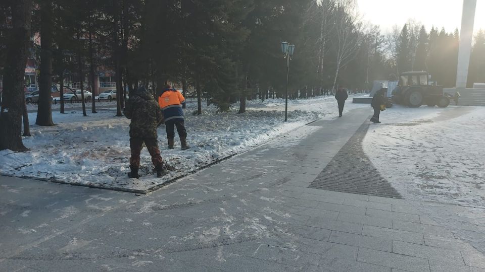 В Биробиджане продолжаются работы по уборке снега