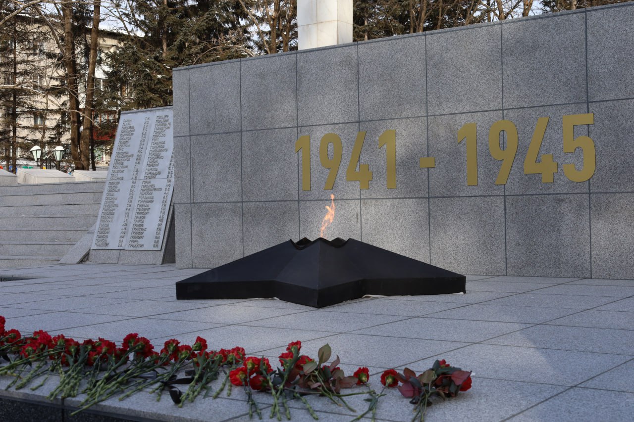 Председатель городской Думы Биробиджана Сергей Радецкий принял участие в памятной церемонии возложения цветов к Вечному огню в сквере Победы. Мероприятие впервые прошло в обновлённом сквере, где завершаются работы по благоустройству.