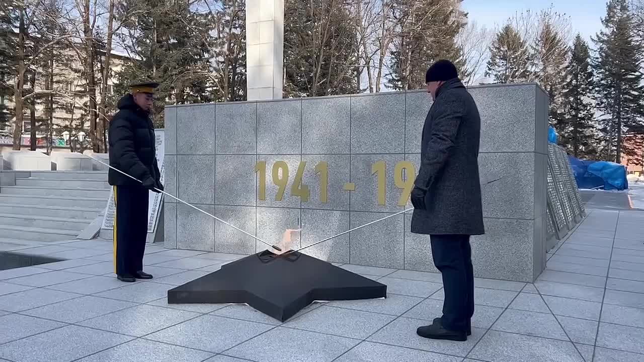 Зажгли Вечный огонь в сквере Победы в Биробиджане