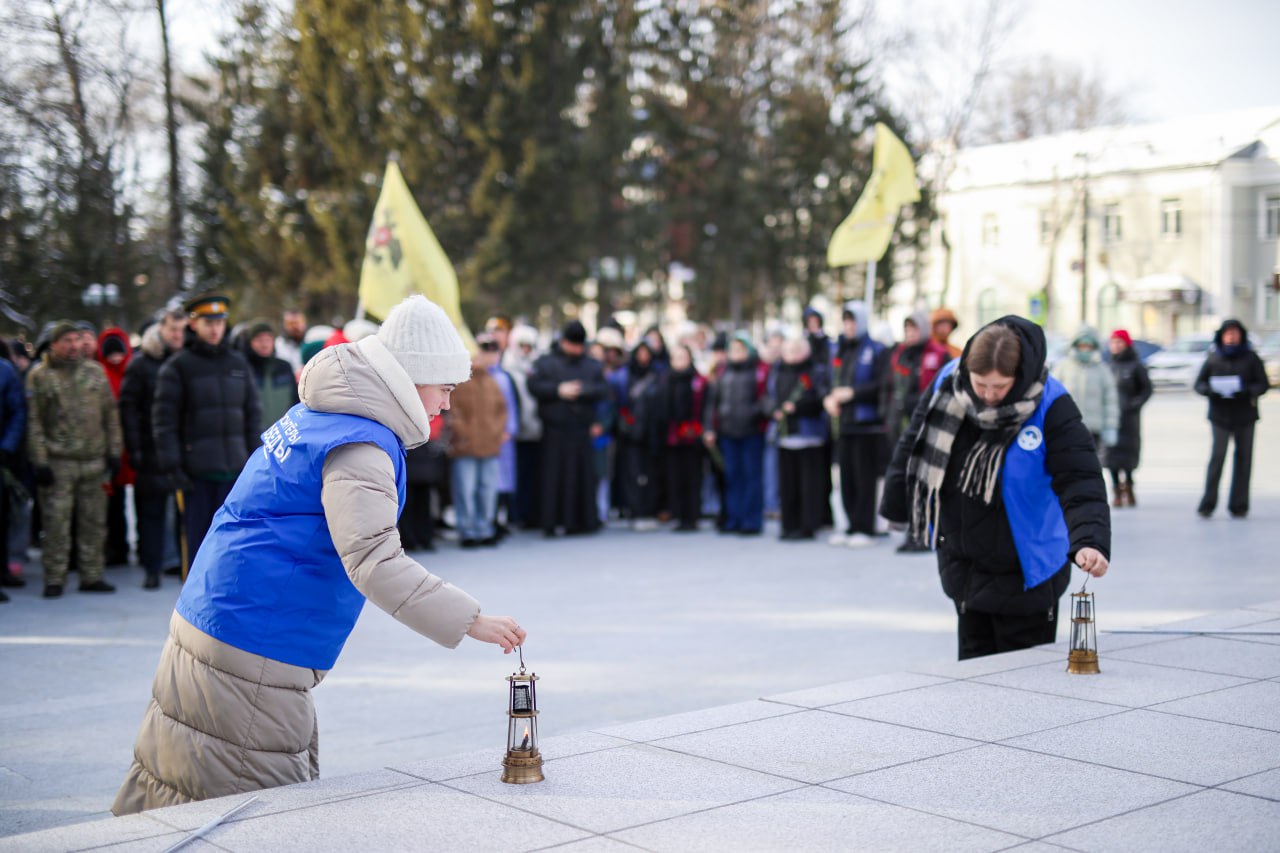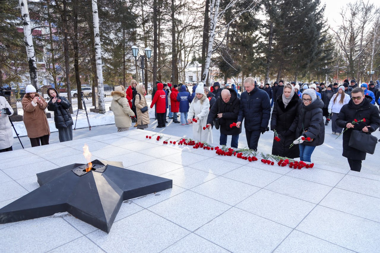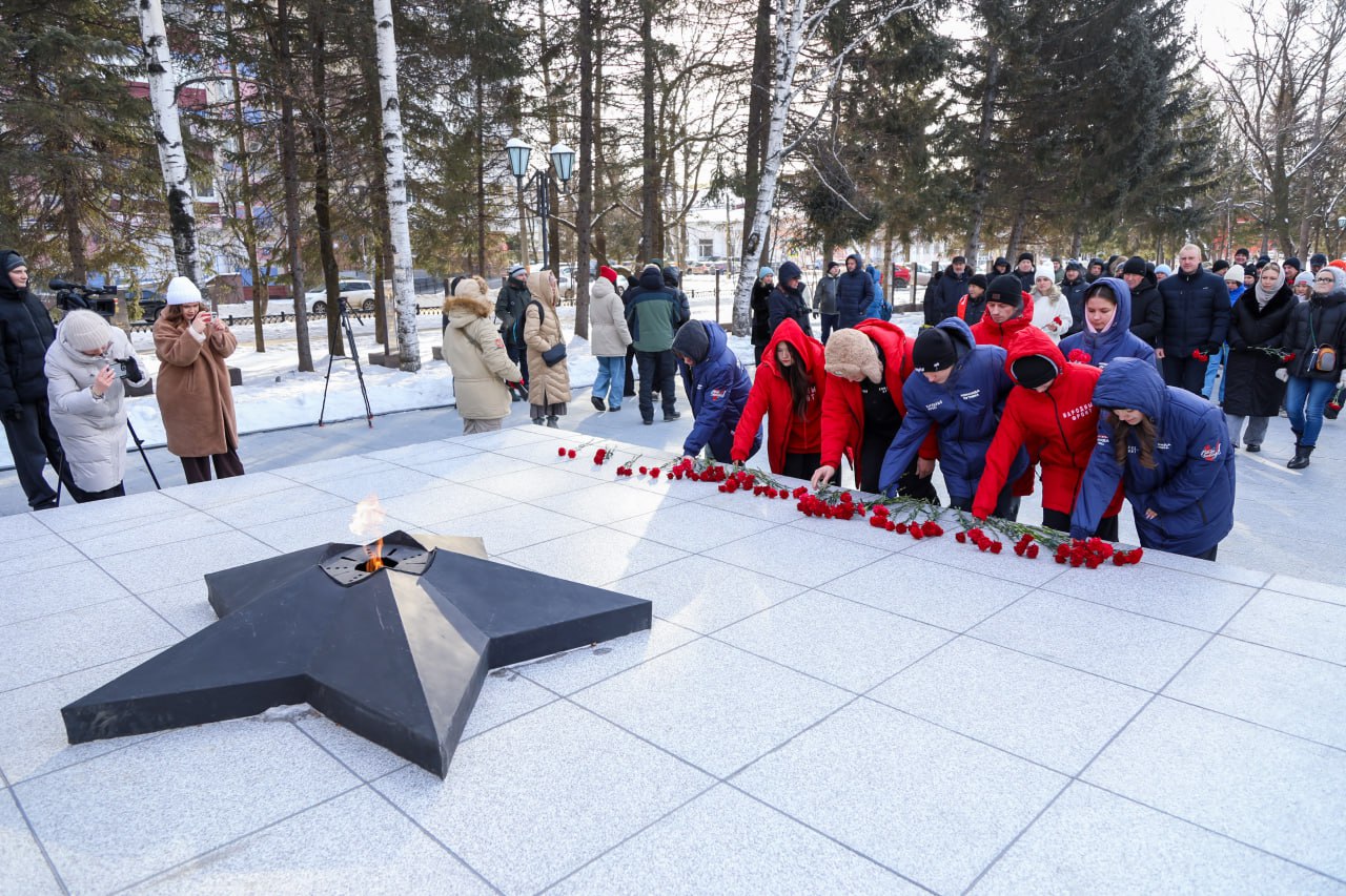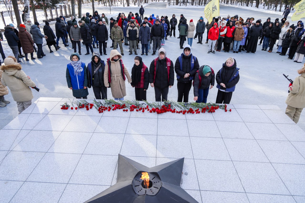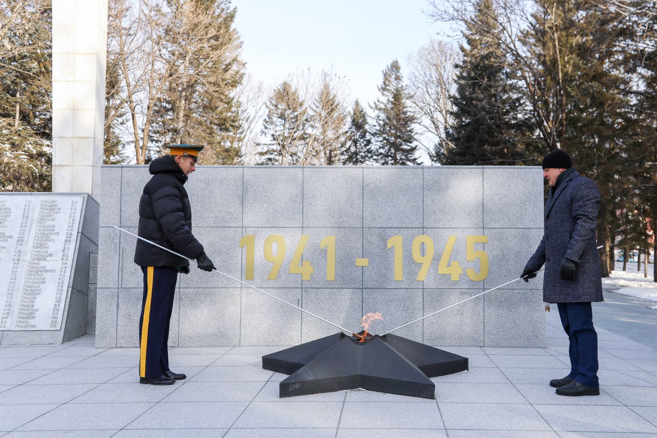 Право зажечь Вечный огонь было предоставлено руководителю областной Ассоциации ветеранов специальной военной операции Сергею Радецкому и казачьему кадету Свято-Никольского казачьего храма Денису Михайлову. Участники церемонии возложили цветы к Вечному огню как как дань уважения и безмерной благодарности всем погибшим за нашу Родину, почтили их память минутой молчания.