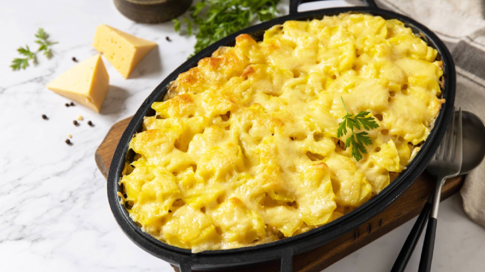 Следующим слоем выложите измельченные чипсы и полстакана каждого сорта сыра. Сверху накройте слоем куриной смеси и посыпьте ее сырными остатками. Выпекайте блюдо в духовке, разогретой до 180 градусов, примерно 25–30 минут, пишет портал Marie Claire.