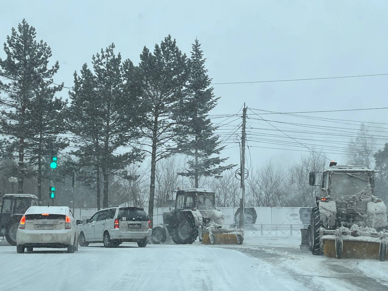 Коммунальные службы расчищают дороги от снега в Биробиджане