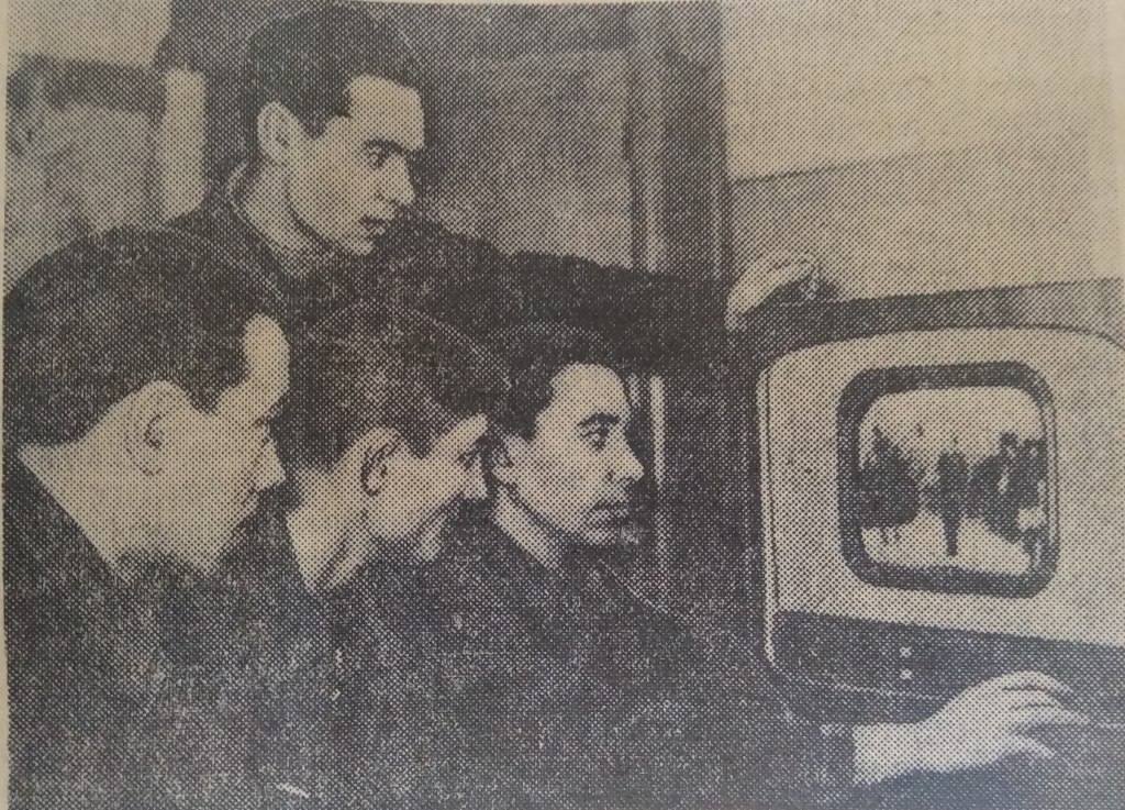 Фото: Коллектив радиолаборатории во главе с главным инженером Гершковичем И.М. проводит опытные работы по приему телепередач из Хабаровска. 1960 г. ГАЕАО. НСБ. Биробиджанская звезда. – 1960. – 10 июля. – № 136.