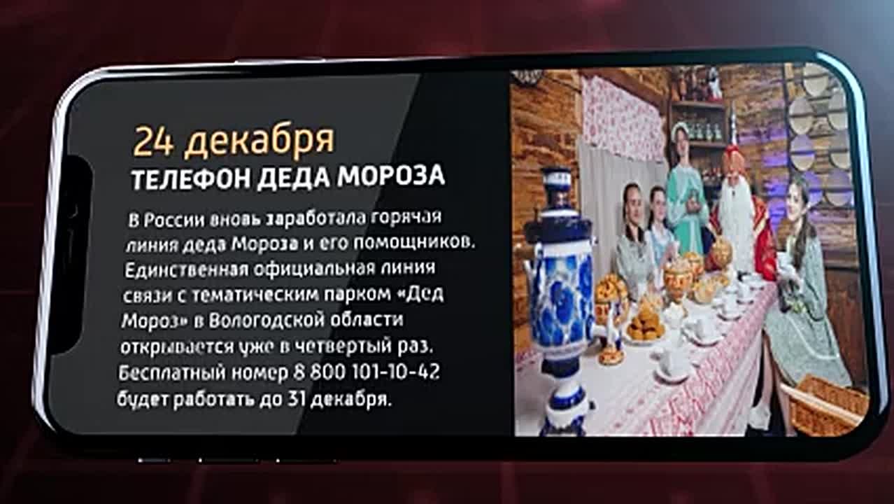 В России вновь заработала горячая линия деда Мороза и его помощников. Единственная официальная линия связи с тематическим парком «Дед Мороз» в Вологодской области открывается уже в четвертый раз. Бесплатный номер 8 800 101-10-42 будет работать до 31 декабря.