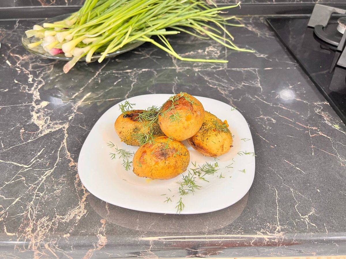 3. Предусмотрена финальная этап: обсыпать картошку сушеным укропом и оставить на минуту, чтобы ароматы раскрылись. В результате получится вкусное и рассыпчатое блюдо, идеальное как самостоятельное угощение или гарнир.