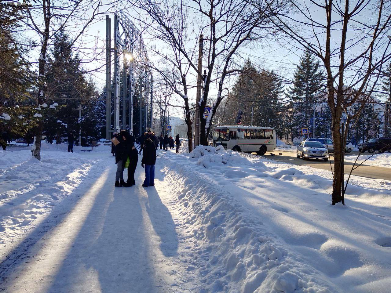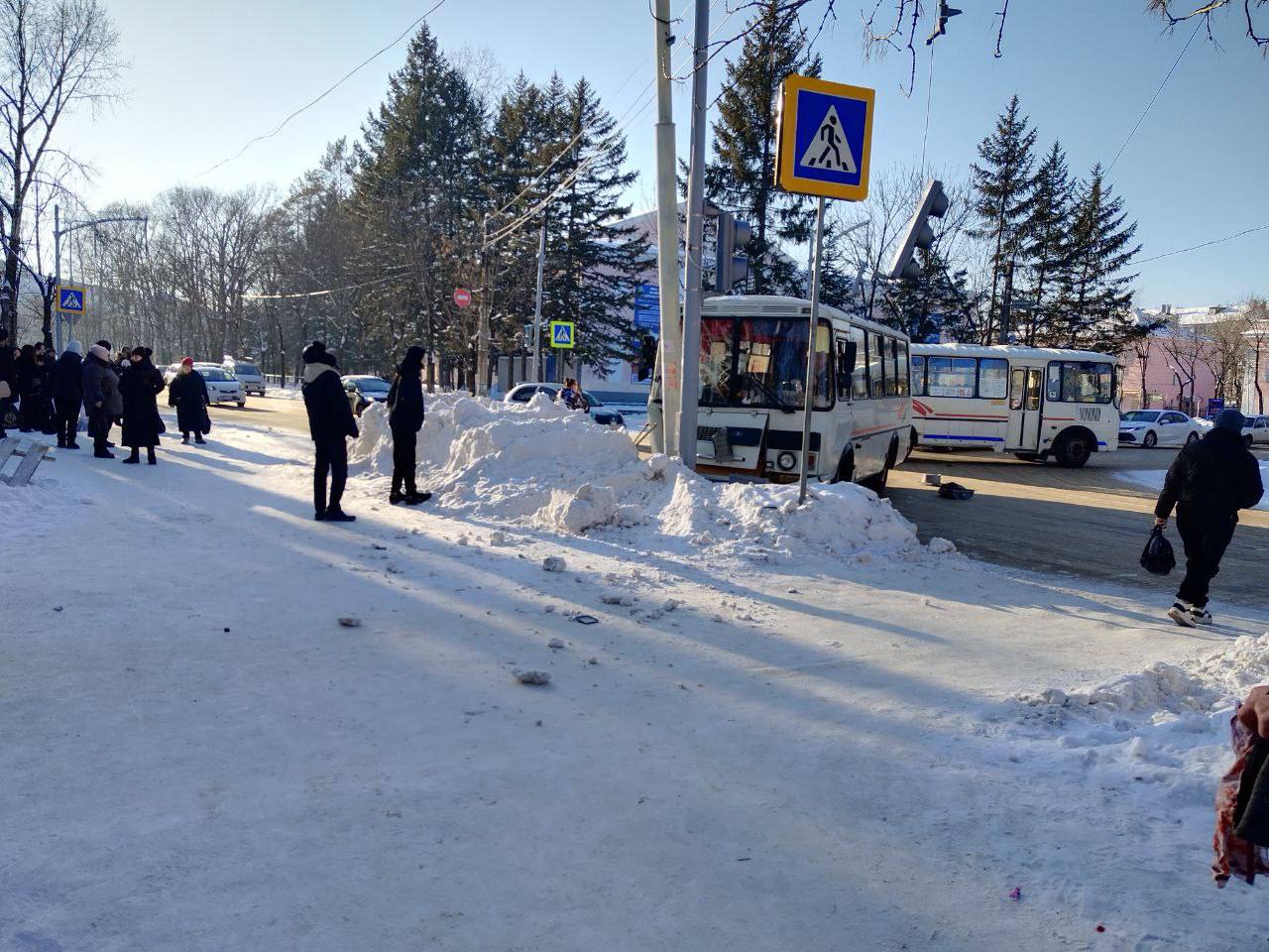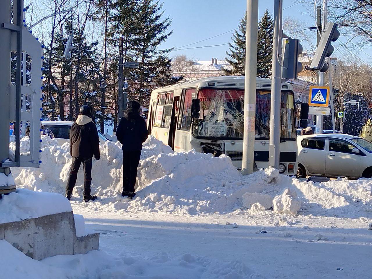Не вписался в поворот и врезался в столб водитель пассажирского автобуса на ул. Октябрьской в Биробиджане