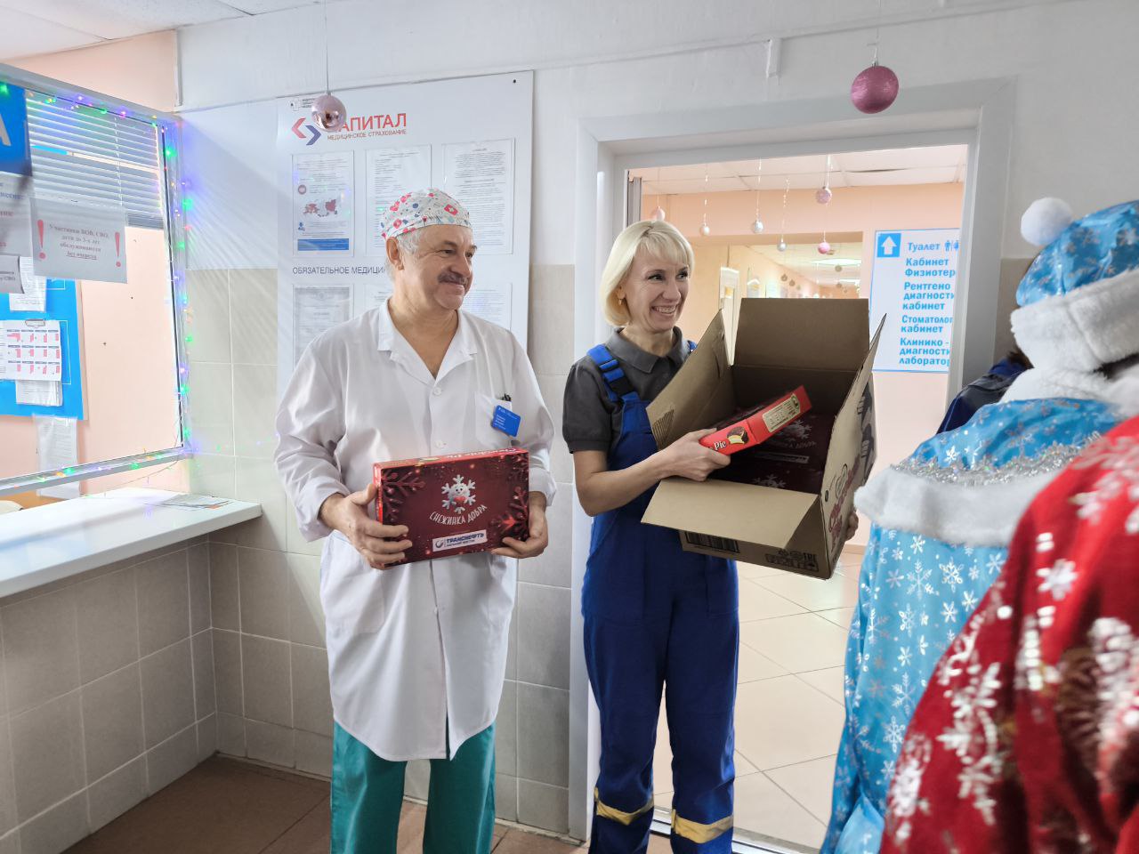 Новогодние подарки получили не только пациенты больницы, но и администрация медучреждения. Участники благотворительной акции передали главному врачу теплые одеяла для нужд организации.