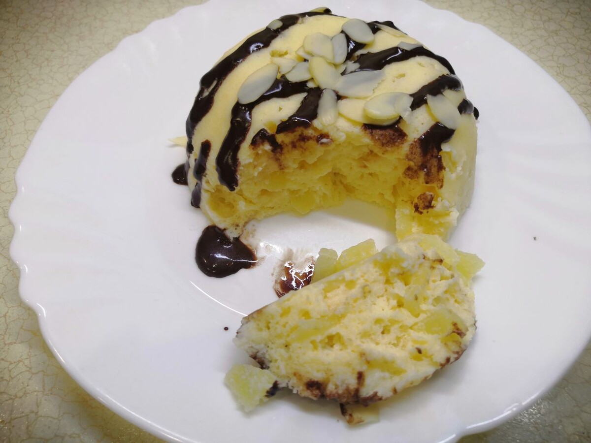 4. Готовиться десерт будет совсем недолго – всего 4-5 минут на средней мощности (примерно 700 Вт). После того как он будет готов, остается только дождаться небольшой остывательной паузы.