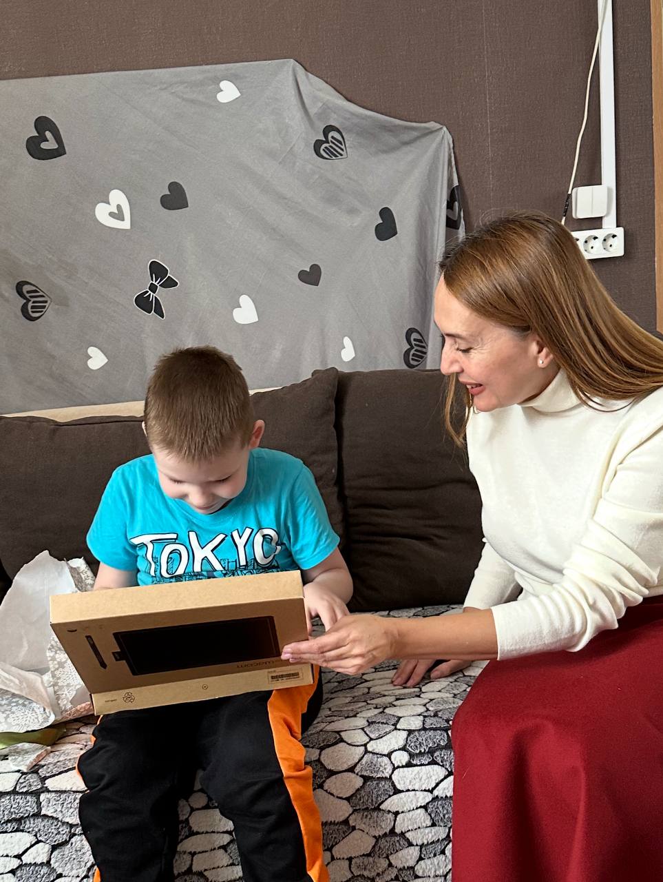 Например, Андрей Голубь вручил ватрушку для катания с горки юному жителю Биробиджана Ярославу, а Наталья Баженова – графический планшет для рисования Даниилу, ученику школы «Ступени». Для Александра Рамазанова и его коллег уже стало доброй традицией накануне Нового года приходить в гости с подарками к воспитанникам дома-интерната в п. Бира. Андрей Иванов тоже побывал в Бире, встретился с юным футболистом Мироном. Мальчик увлекается футболом, поэтому попросил спортивную форму и мяч. Мечта исполнилось!