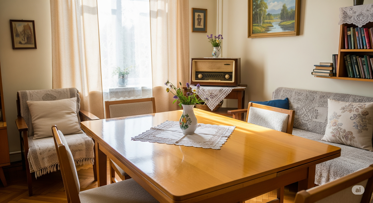 - Эмоциональная связь с вещами: Каждая покупка была значима. Хозяйки долгие месяцы могли откладывать на новый сервиз или шторки, что формировало бережное отношение к имуществу.